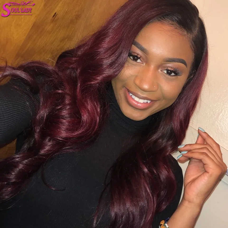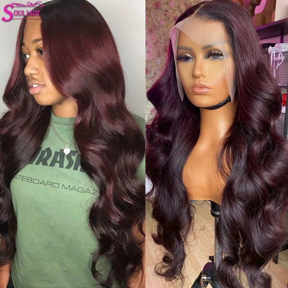 1B 27 30 99J бордовый парик с кружевной передней частью, парик из человеческих волос с объемной волной, бразильские волосы 13x4, парик с кружевной передней частью