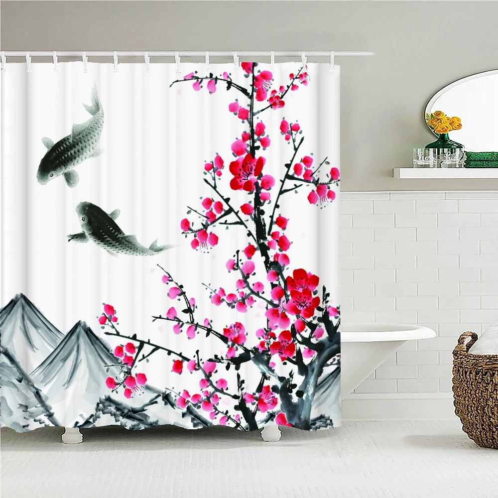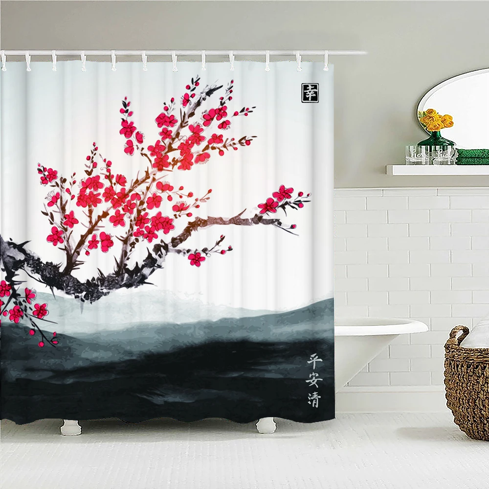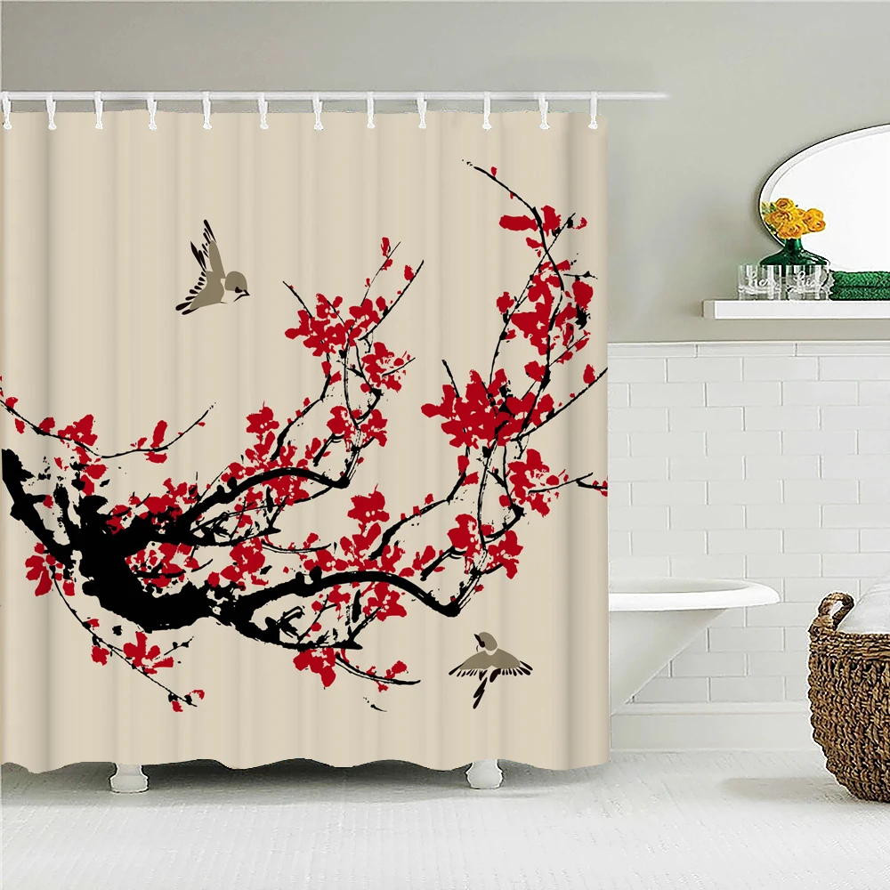 Цветущая Сливовая ванна, занавеска, водонепроницаемая ткань, занавеска для душа, китайский стиль, цветочная ванна для птицы, экран для ванной комнаты, домашний декор