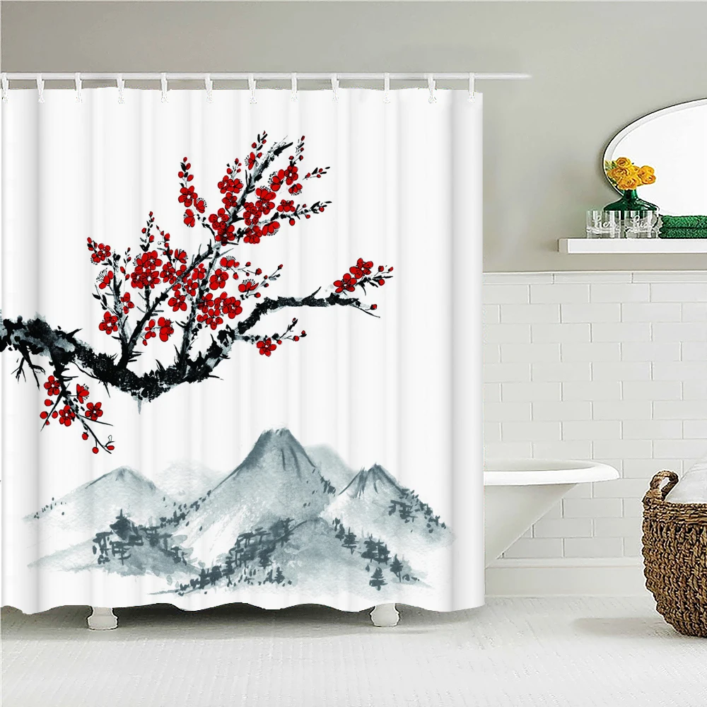 Занавеска для ванной с цветущей сливой, водонепроницаемая занавеска для душа из ткани в китайском стиле, цветочный экран для ванной комнаты, домашний декор