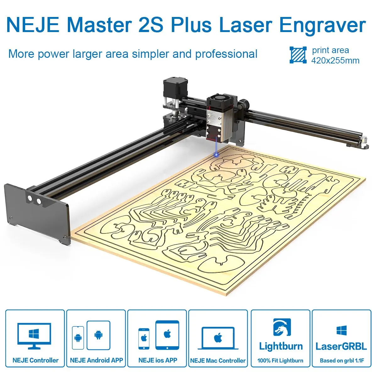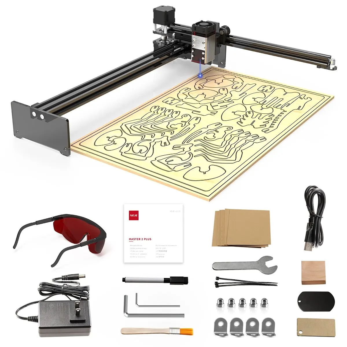 Гравировальная машина NEJE Plus 30 Вт, 7,5 Вт, обновленная выходная мощность, 32-битная материнская плата, большая рабочая площадь 255x440 мм, лучший мат для резки