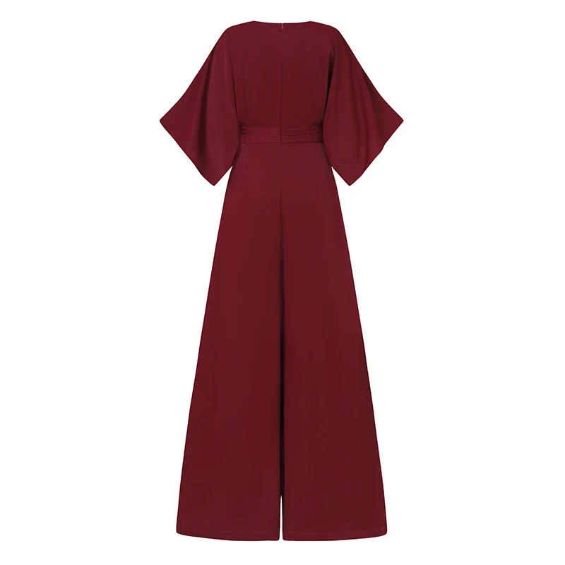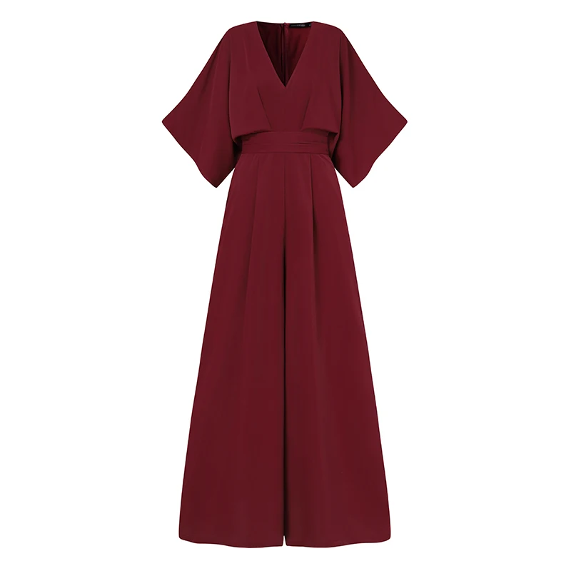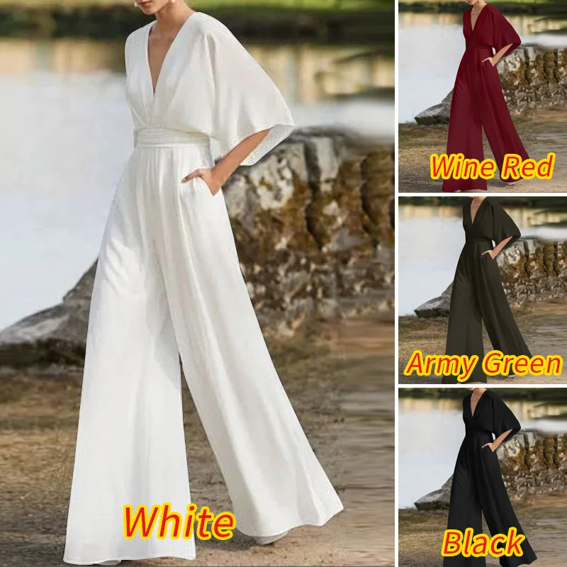 Женский комбинезон с широкими штанинами, с V-образным вырезом и рукавами 34