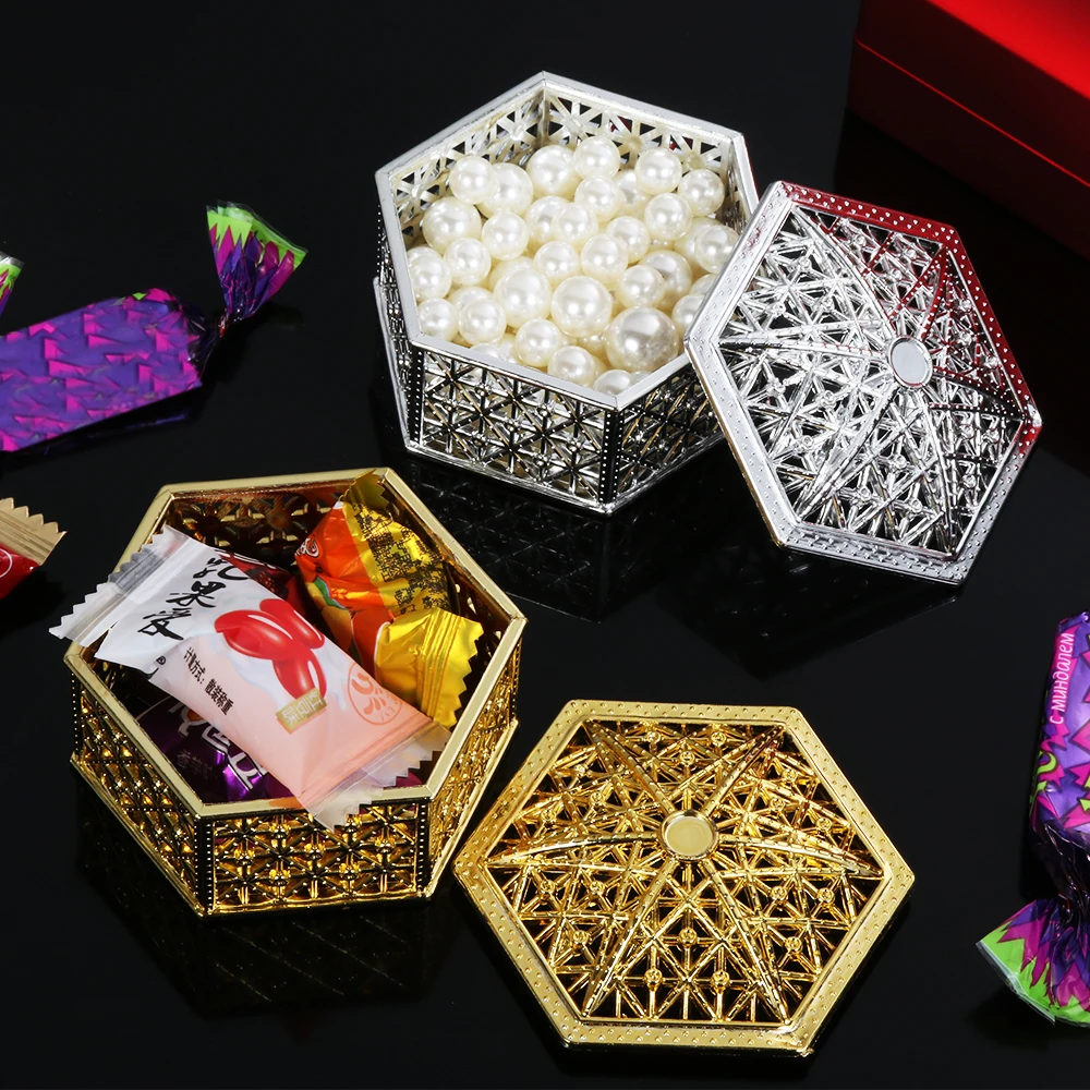 Материал: пластикДополнительный цвет: золотой, серебряный (как показано на фотографии)Размер: как на картинкеФорма: квадратная форма/ШестигранникПосылка включает в себя: 1 подарочная коробка для конфетОписание:-Великолепные коробки для свадебной вечеринки.-Подходит для упаковки небольших подарков, ремесел, шоколада, конфет и т. д.-Может сделать незабываемый сюрприз для ваших гостей.-Изготовлен из высококачественного пластика и разработан со стильным дизайном коробки сокровищ.Примечания:-Из-за светильник и экрана Цвет Товара может быть s светильник ly отличается из-за характеристик монитора компьютера.-Возможны незначительные отклонения в размерах из-за различных измерений вручную.