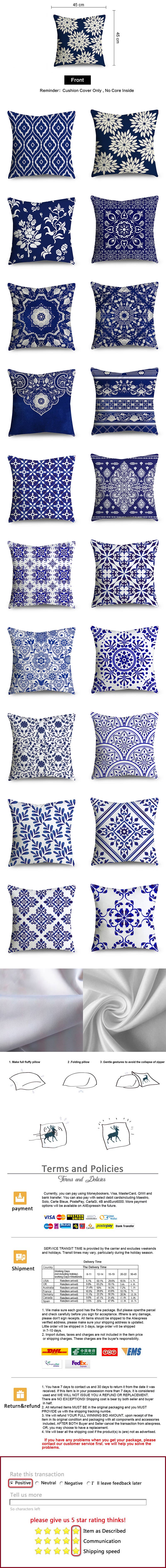 Декоративный Чехол-Подушка OMIO с синим рисунком для гостиной, спальни, автомобиля, дивана, декоративная подушка, Чехол 45*45 см