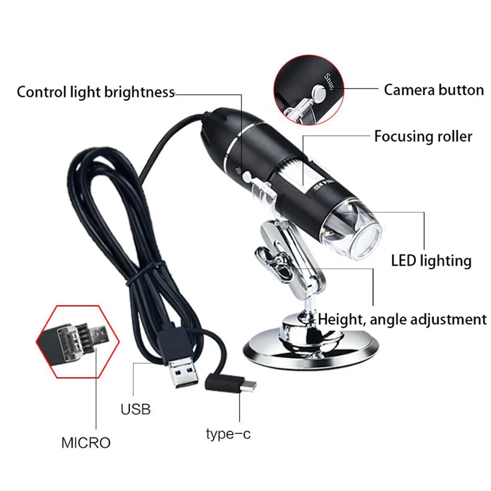 Цифровой микроскоп, портативный электронный микроскоп с USB разъемом типа C и подсветкой, 16001000X, для пайки, ремонта мобильных телефонов
