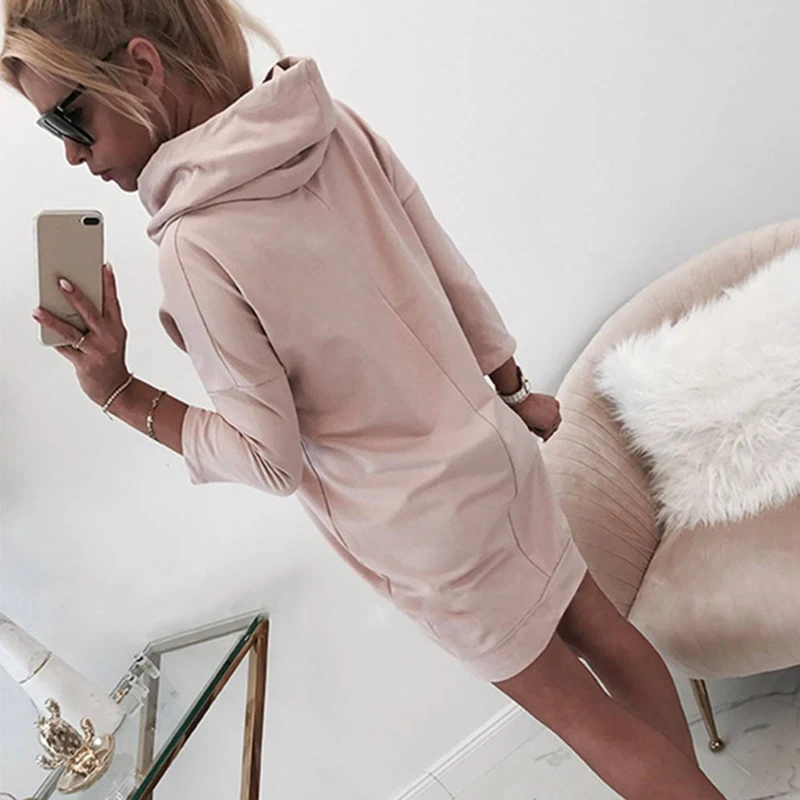 Женское Повседневное платье-толстовка с капюшоном, розовое платье-п...