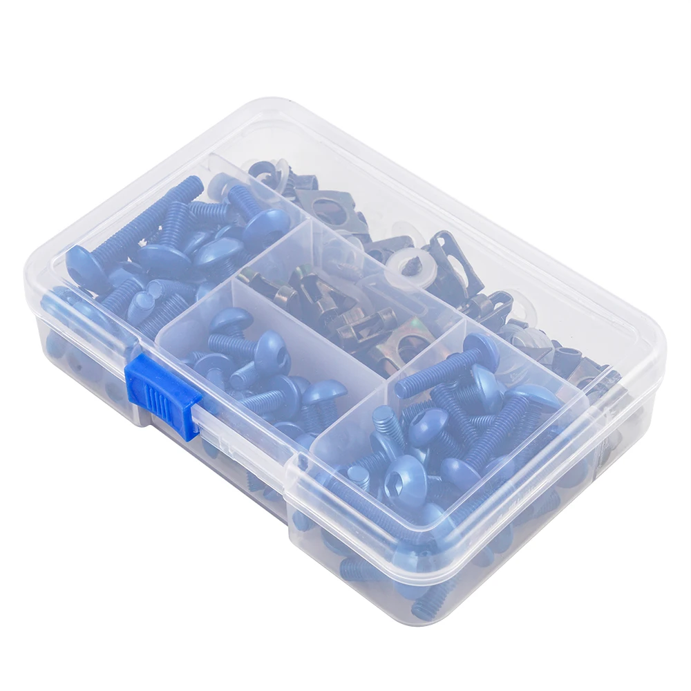 Посылка(С пластиковой коробкой)Всего: 177 шт.Болты M6 (6x40 мм) x 5Болты M6 (6x16 мм) x 20Болты M6 (6x20 мм) x 20Болты M5 (5x16 мм) x 20Болты M5 (5x25 мм) x 8Ферменные винты (4,8*20 мм) x 4Скоростные зажимы x 14Шайбы M6 x 20Шайбы M5 x 20M6 пластиковая стойка x 20M5 пластиковая стойка x 20Гайка x 4Гаечный ключ x 2
