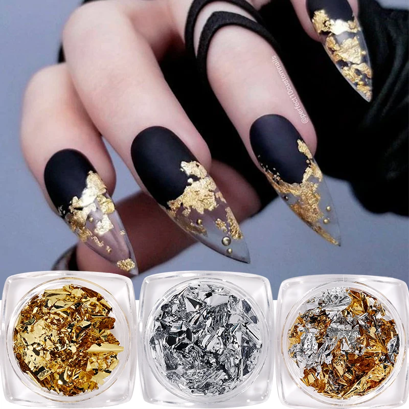 Блестки для ногтей, 1 коробка, серебристые золотистые блестящие хлопьев, алюминиевая фольга