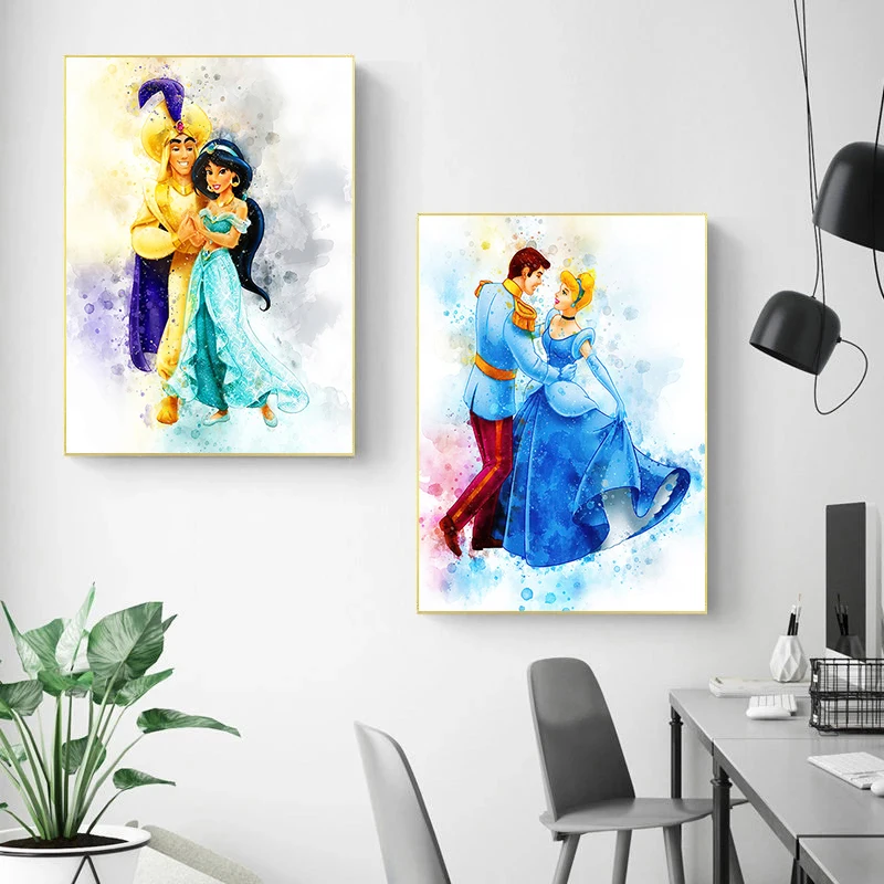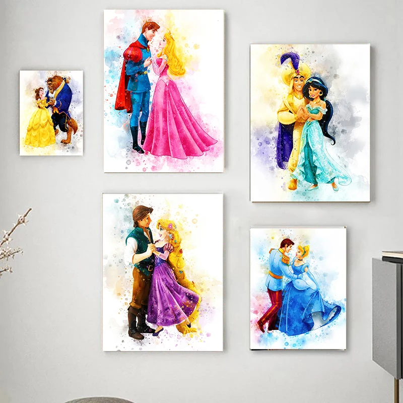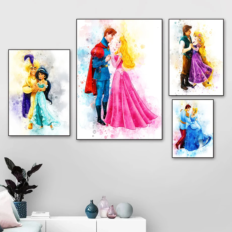 Картины на холсте с изображением принцессы и принца Диснея, постеры с мультяшными персонажами и Настенная картина для гостиной, украшение для дома