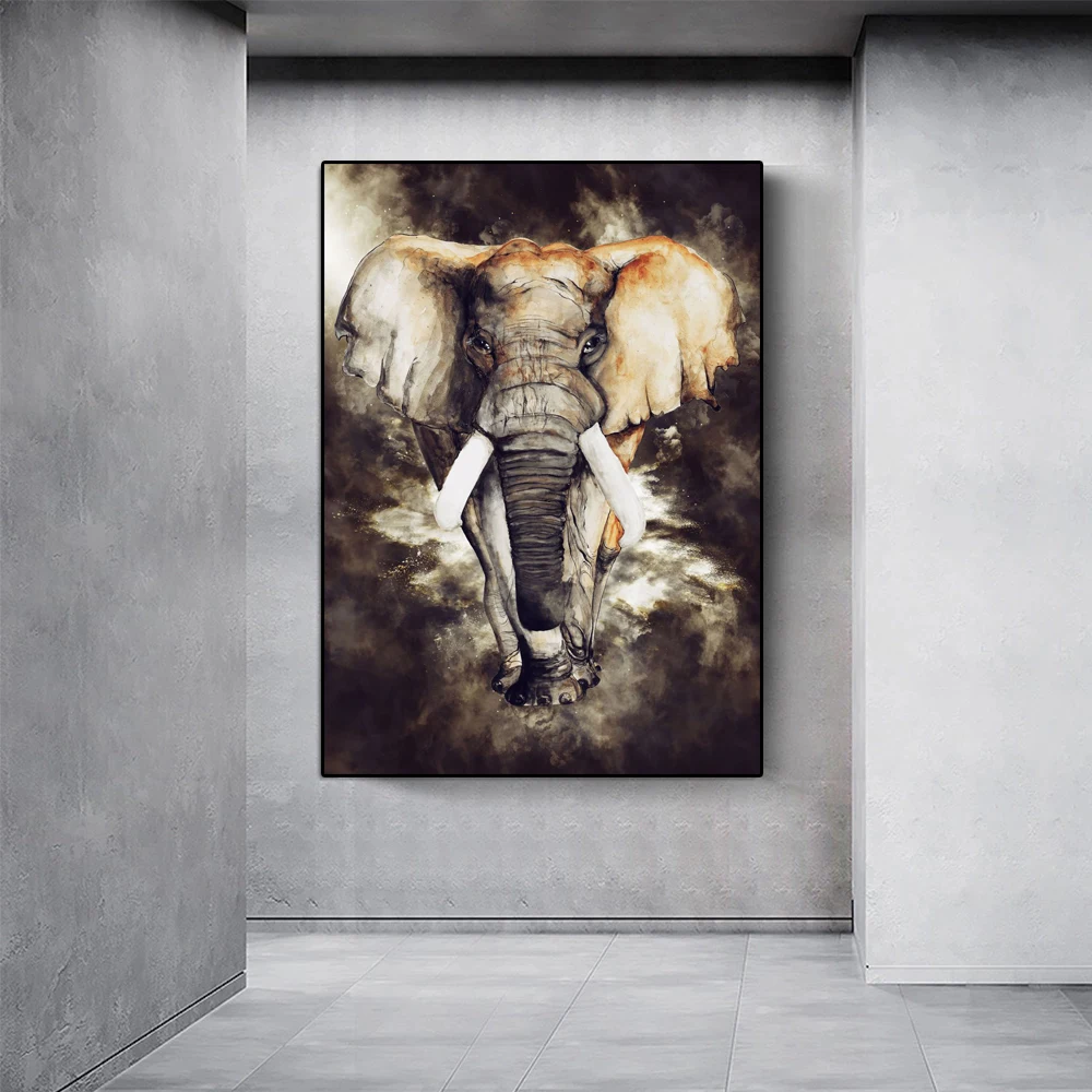 Настенные плакаты в стиле Фэнтези со слоном, животный принт на холс...