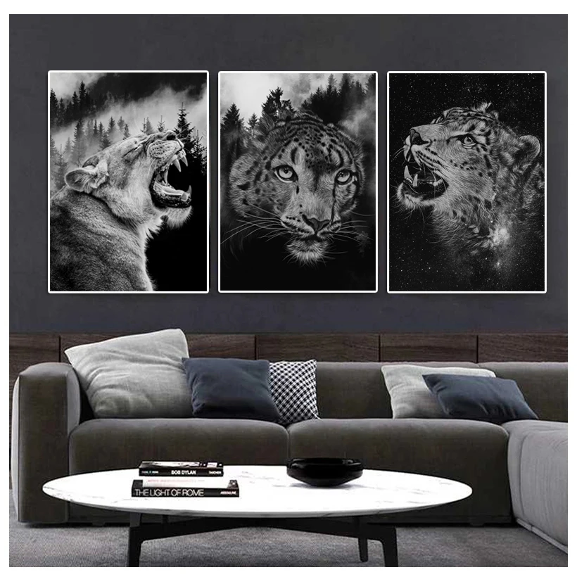 Художественные постеры с изображением животных, черный дикий лев, картина тигр на холсте г., принты, настенные картины для гостиной, домашнего декора стен
