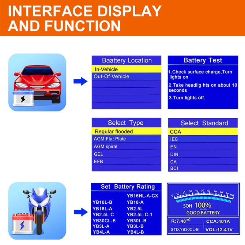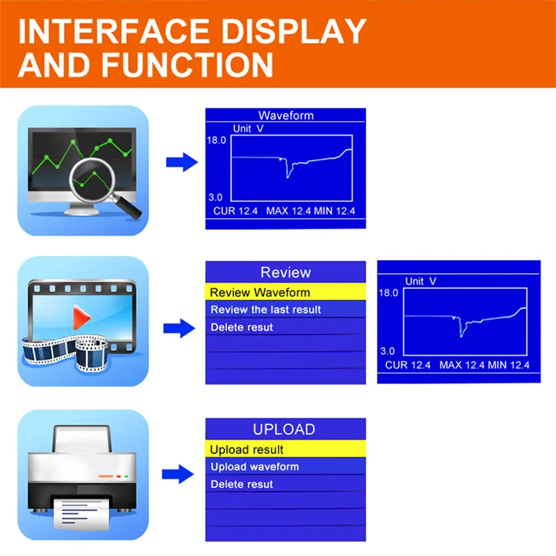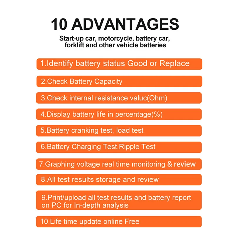 Тестер батареи KW650 использует передовые технологии тестирования проводимости в слове, чтобы легко, быстро и точно измерить фактическую емкость стартера автомобиля батареи холодного запуска усилителей, здоровое состояние самой батареи, И общей неисправностью системы запуска транспортного средства и системы зарядки, которая может помочь техническому обслуживанию быстро и точно найти проблему. Таким образом, для быстрого ремонта транспортного средства. Особенности: 1. Поддерживает тестирование широкого диапазона батарей 6 В/12 В. 2. Простой и простой в использовании 3. Испытательные батареи на входе/выходе транспортного средства 4. Точные результаты в миллисекундах 5. Анализ срока службы батареи, процент здоровья 6. Результат анализа: хороший, перезарядка или замена 7. Бесплатное пожизненное обновление и печать через ПК. 8. Добавьте анализ формы сигнала напряжения аккумулятора с помощью одной кнопки 9. 3 светодиодный индикатор непосредственно показывает, что произошло с вашим аккумулятором 10. Высококачественный импортный чипсет 103VCT6 STM-32, более высокая скорость работы. Спецификация: Цвет: черный Экран: 2.4in TFT цветной экран Размер изделия: 12.5x7x2cm Система поддержки: XP /WIN7 /WIN8 /WIN10 Примечание: -Возможны небольшие погрешности в размере при ручном измерении. -Отклонение цвета может отличаться из-за различных настроек монитора, пожалуйста, поймите. Упаковочный листПосылка включает в себя: 1 х тестер батареи
