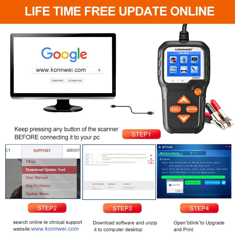 Тестер автомобильного аккумулятора KONNWEI KW650, анализатор аккуму...