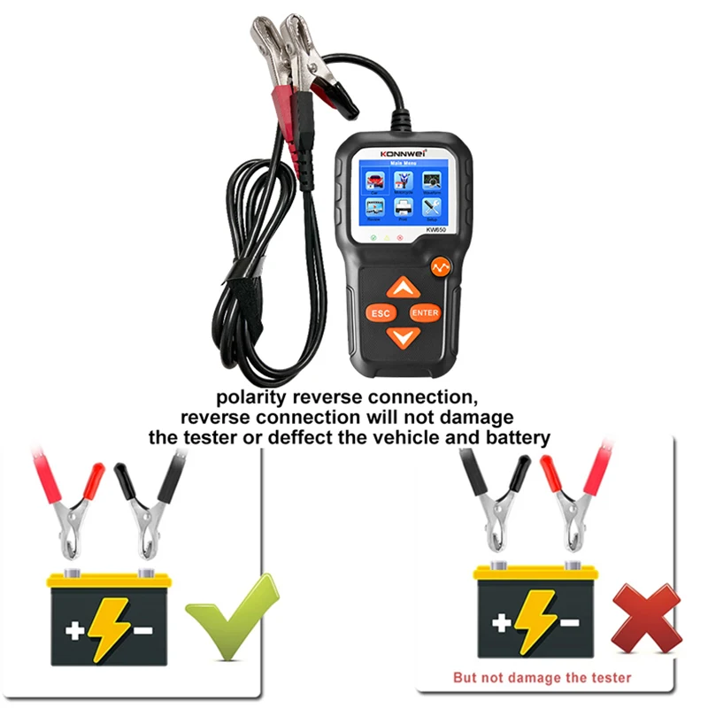 Тестер автомобильного аккумулятора KONNWEI KW650, 12 В, 6 в, анализ...