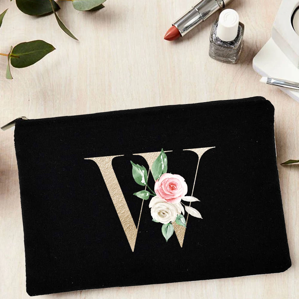 Косметички с цветочным принтом и алфавитом, модные холщовые черные ...