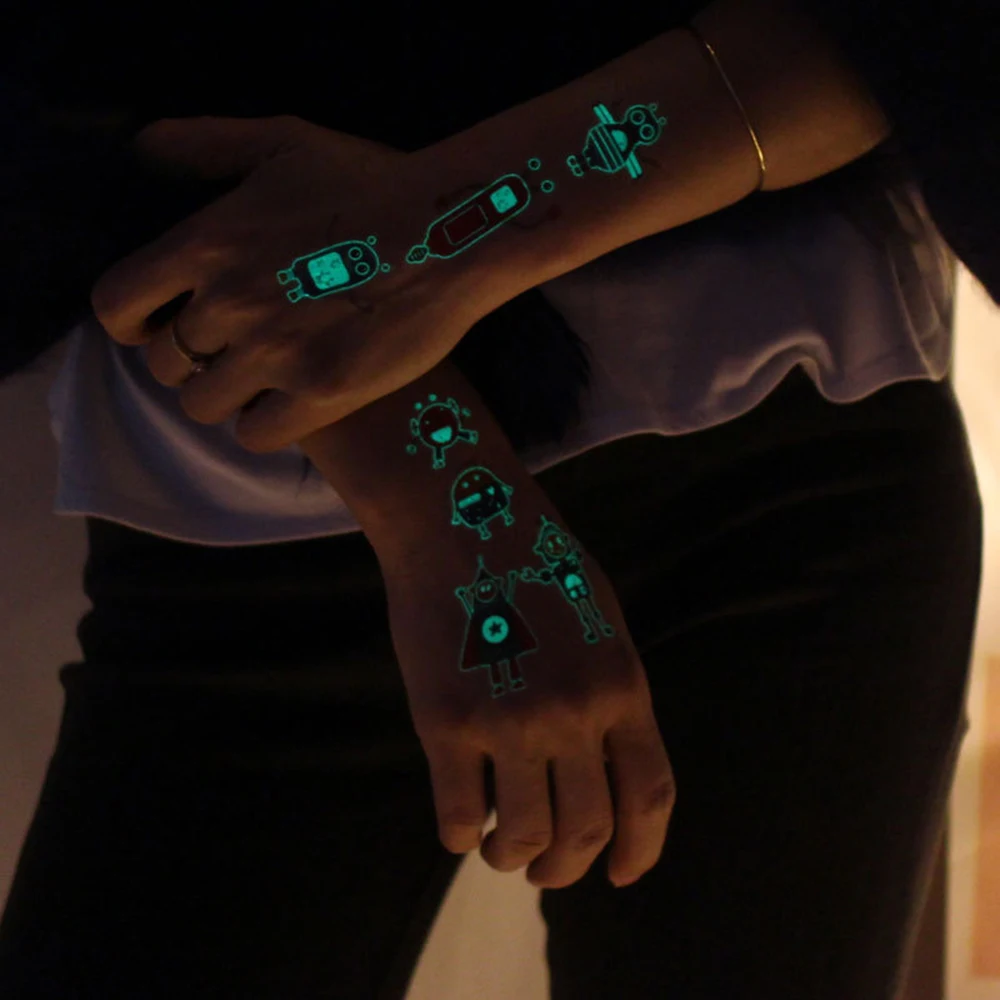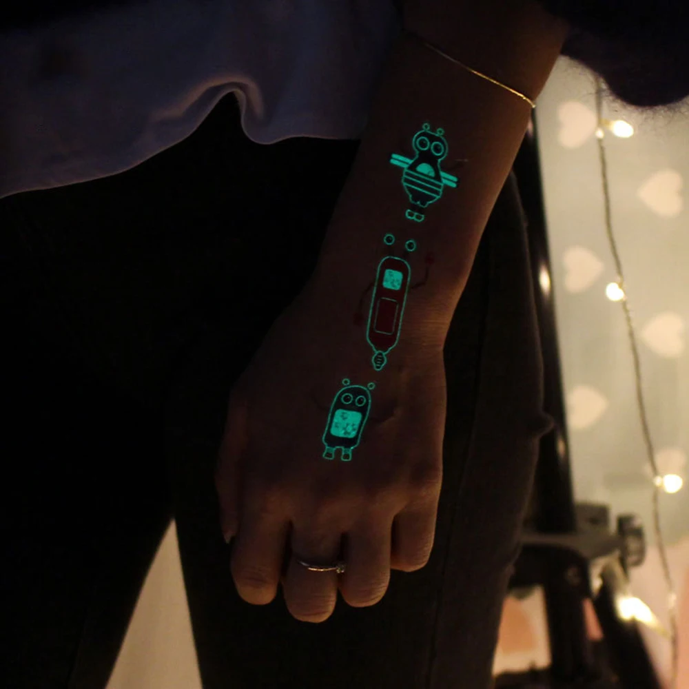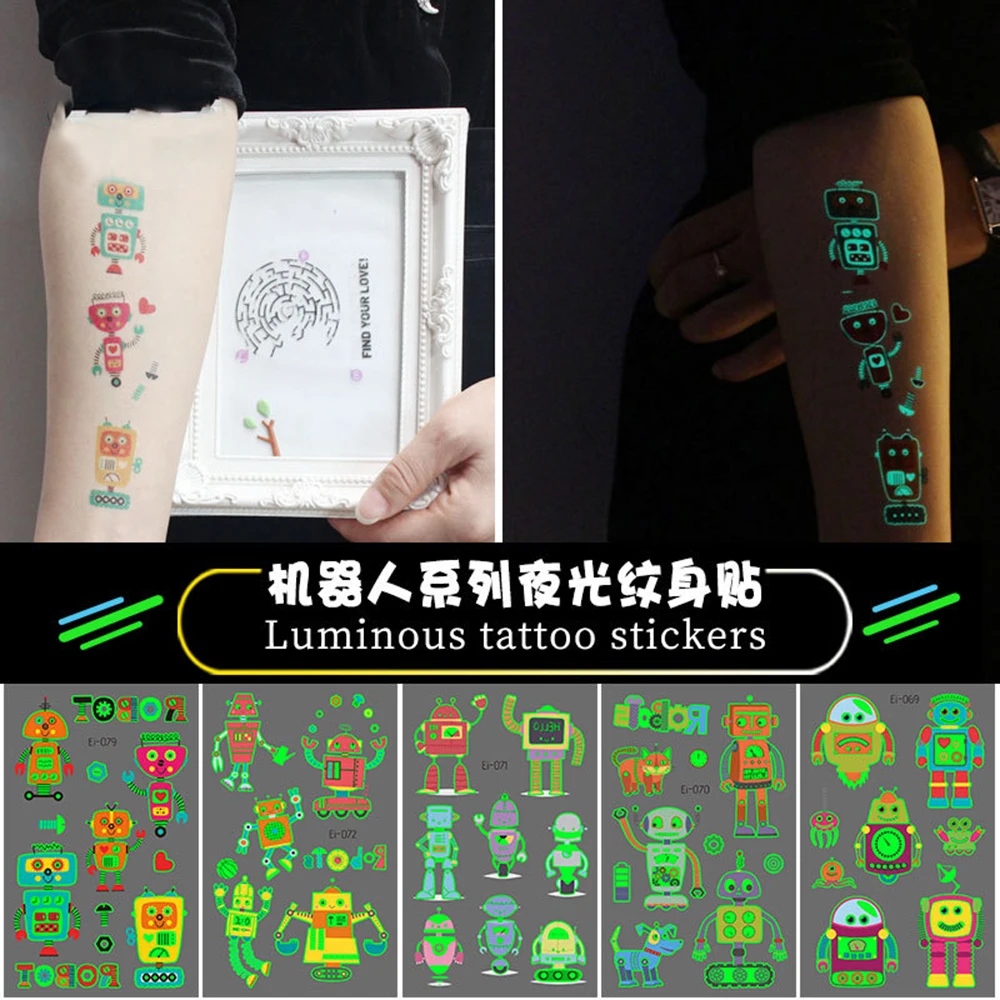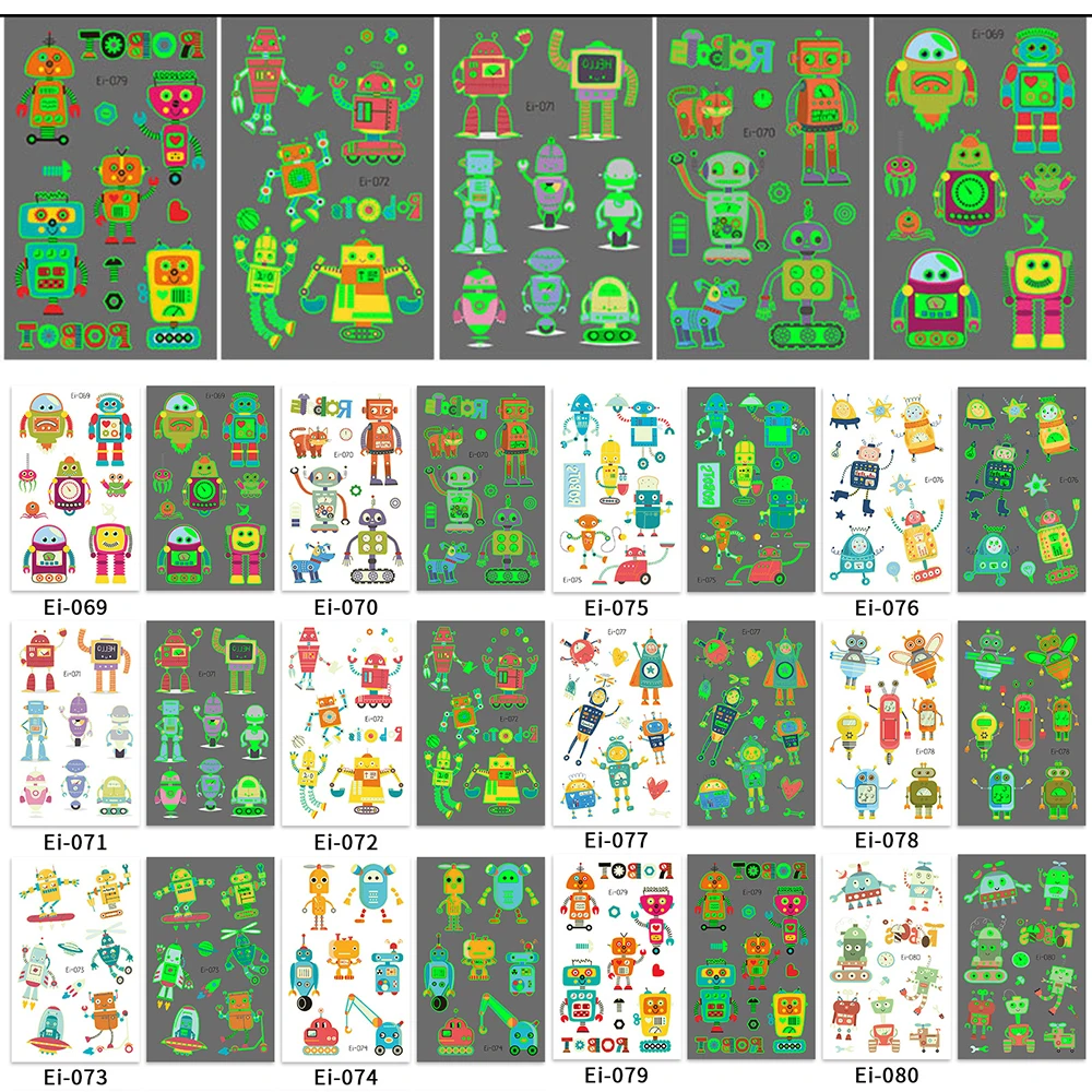 Светящийся робот, веселые Мультяшные наклейки, временная татуировка на лицо, руки, ножки для детей, художественное украшение