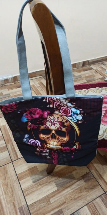 PrintedBeautiful Skull Cherry Blossoms Handbag