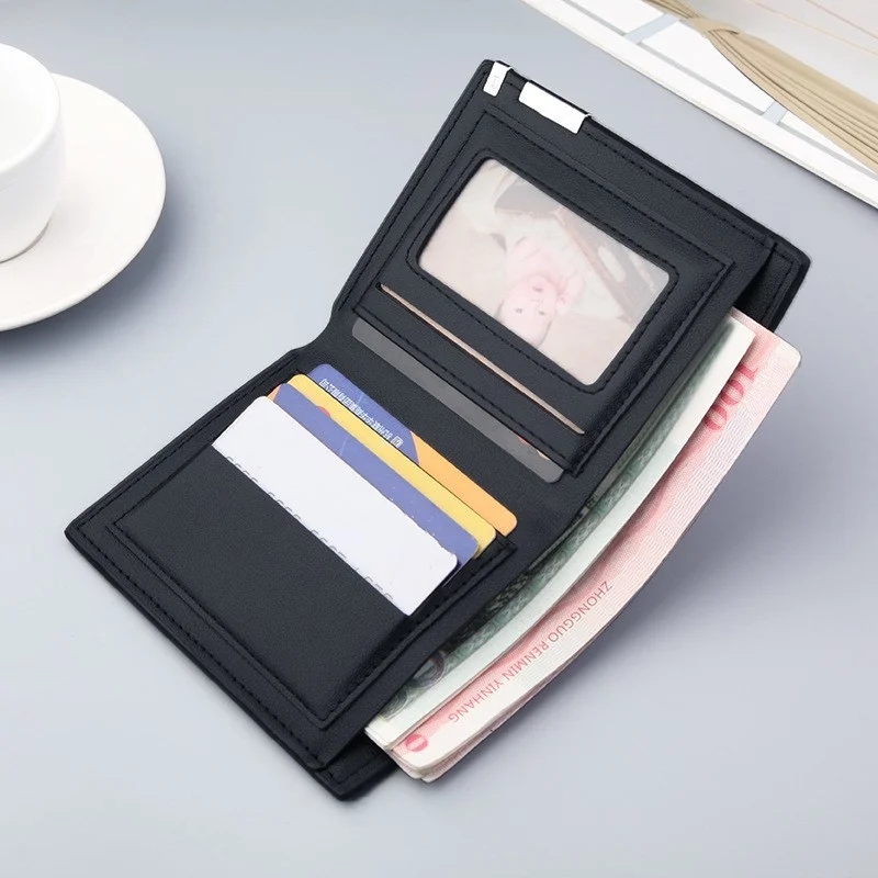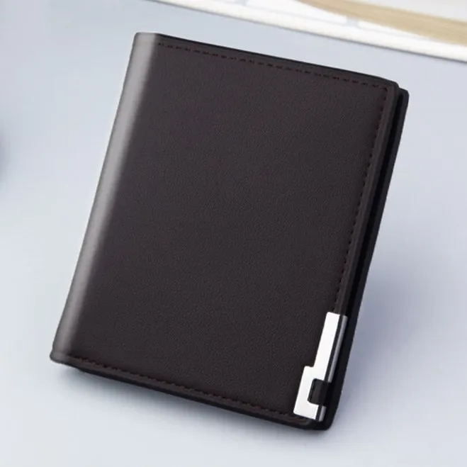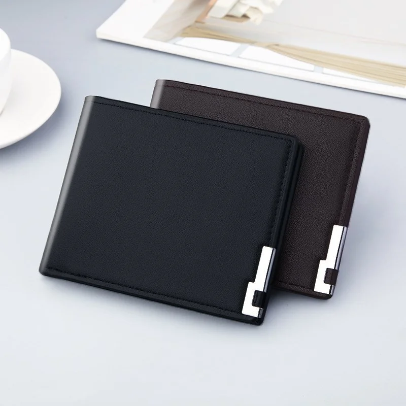 Короткий кошелек для мужчин с железным краем, корейский Молодежный горизонтальный бумажник, трендовый держатель для карт, открытый мужской кошелек из искусственной кожи