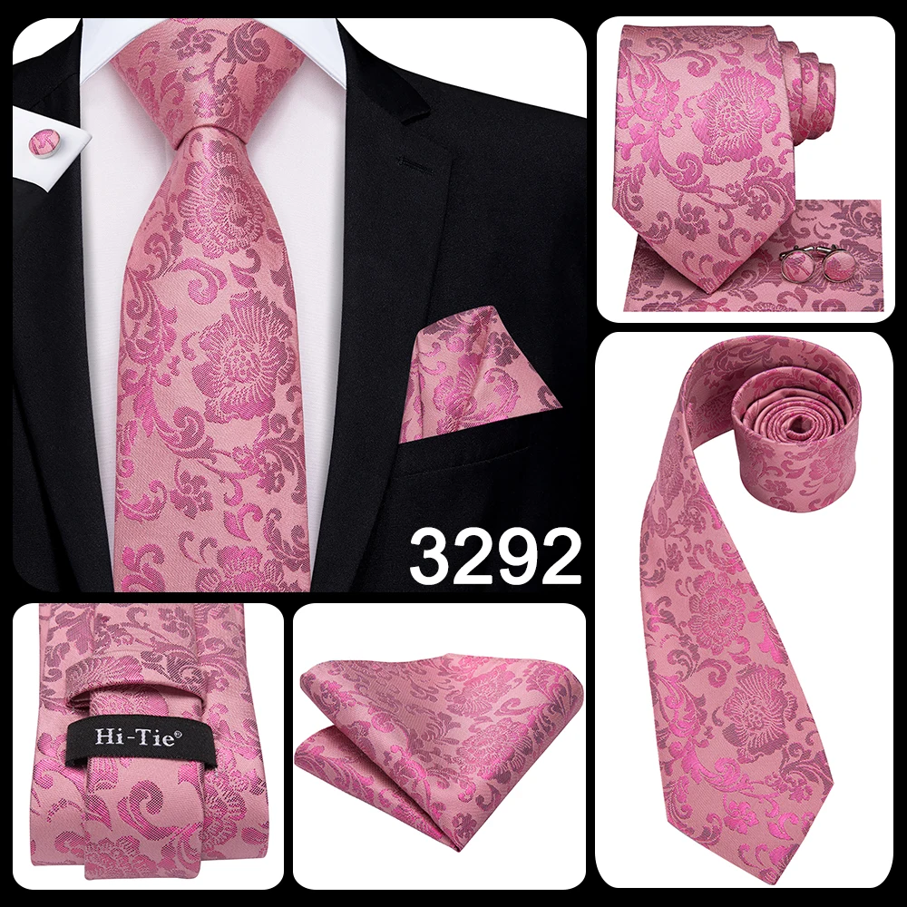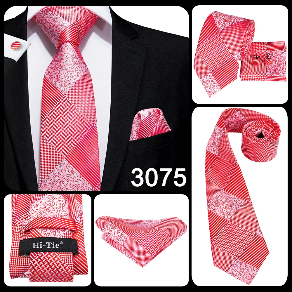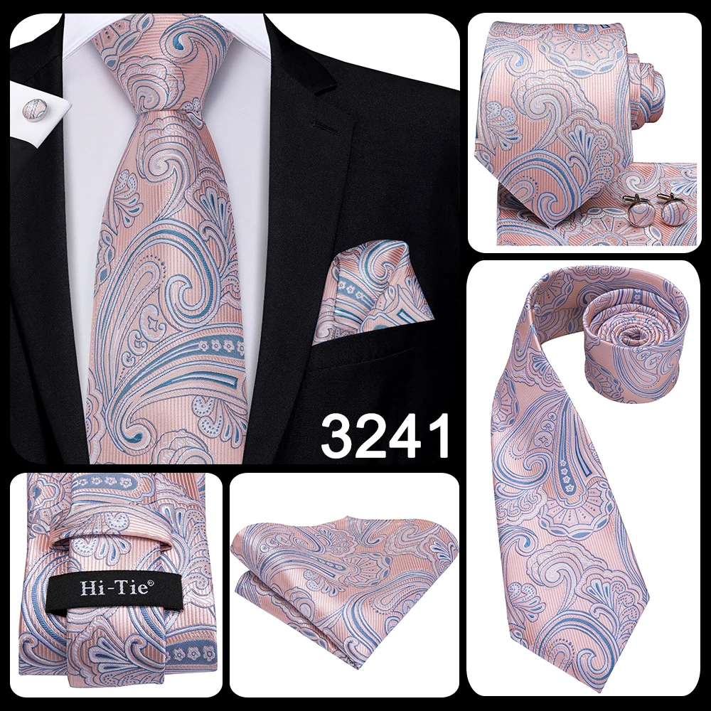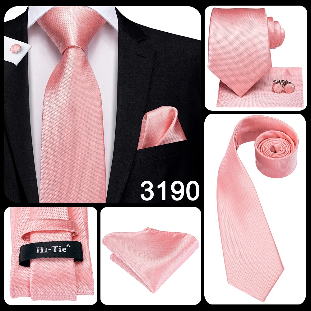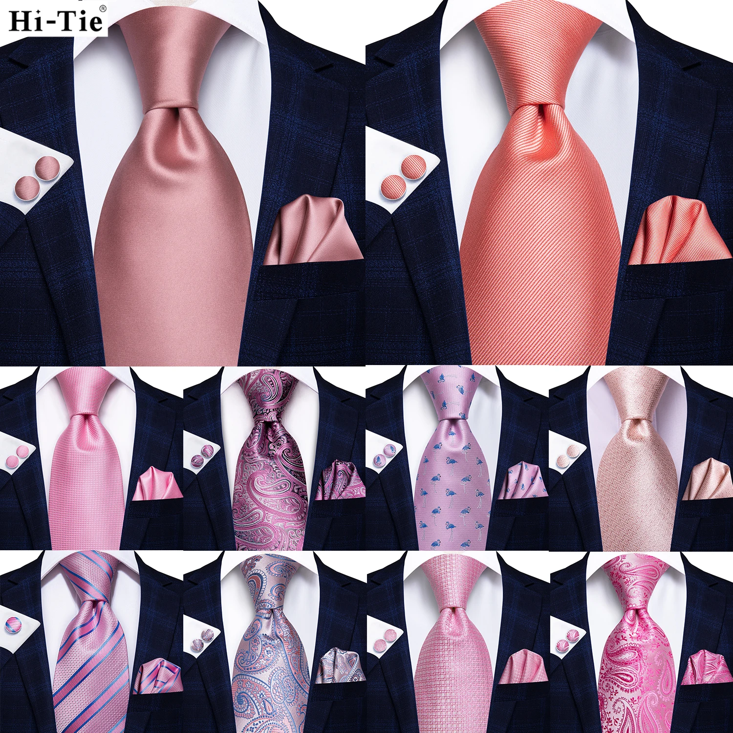 Hi-Tie, Одноцветный, розовый, коралловый, Пейсли, Мужской Шелковый Свадебный галстук, модный дизайн, галстук для мужчин, качественный, Hanky, запонки, для бизнеса, вечеринки