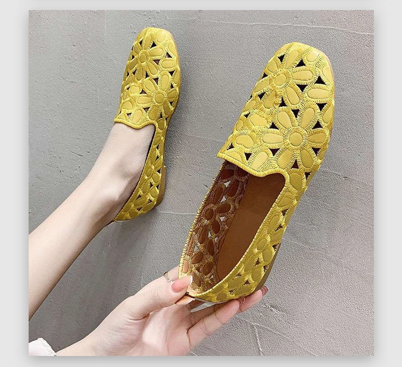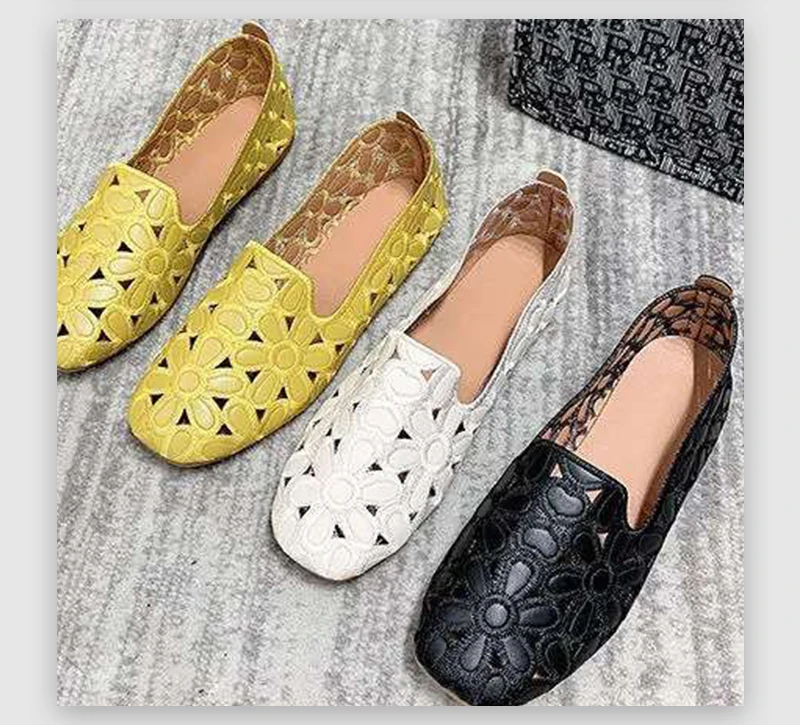 Женские повседневные лоферы, ажурные мягкие туфли на плоской подошве, дышащая обувь для улицы, большой размер 42, для лета, 2022