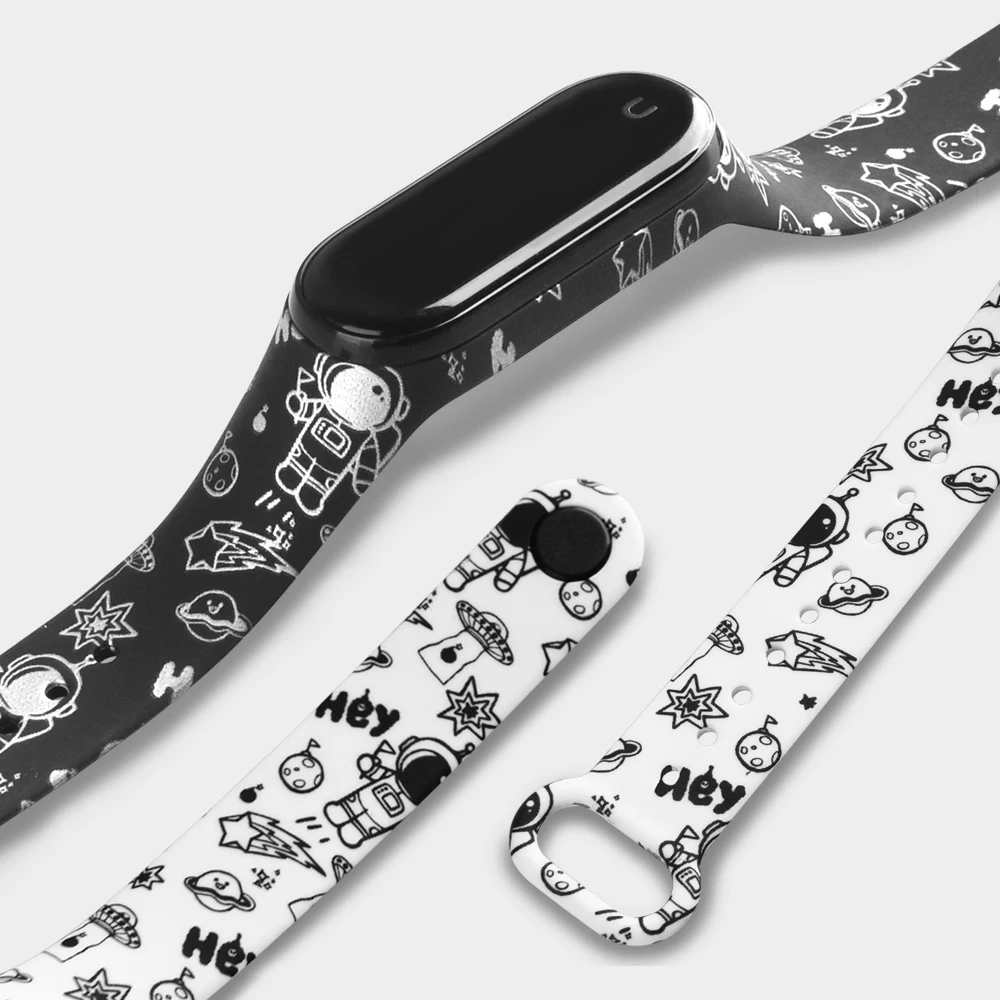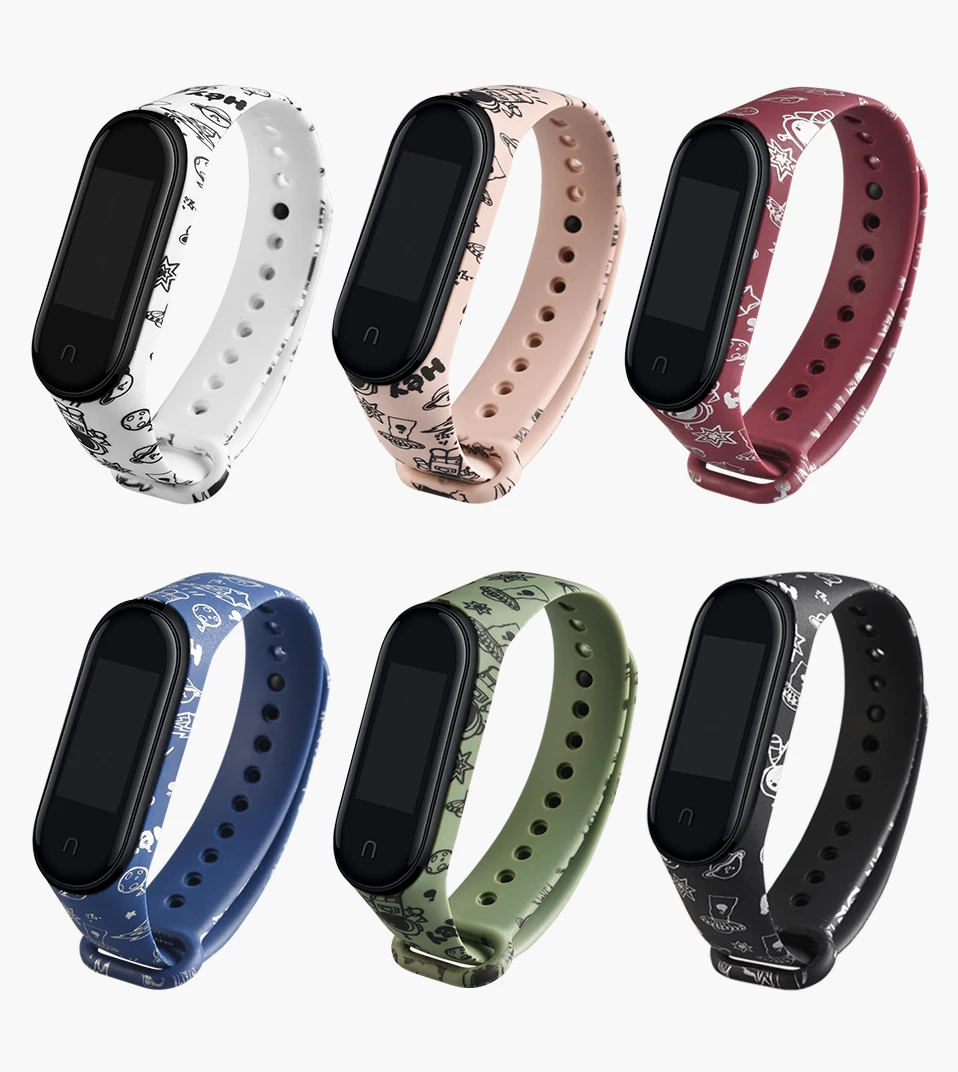 Браслет для Xiaomi Mi Band 5 4 3 сменные браслеты на ремешках Mi Band5 Band4 Band3 ремень Xiomi Mi5 мягкий силиконовый ремешок с рисунком