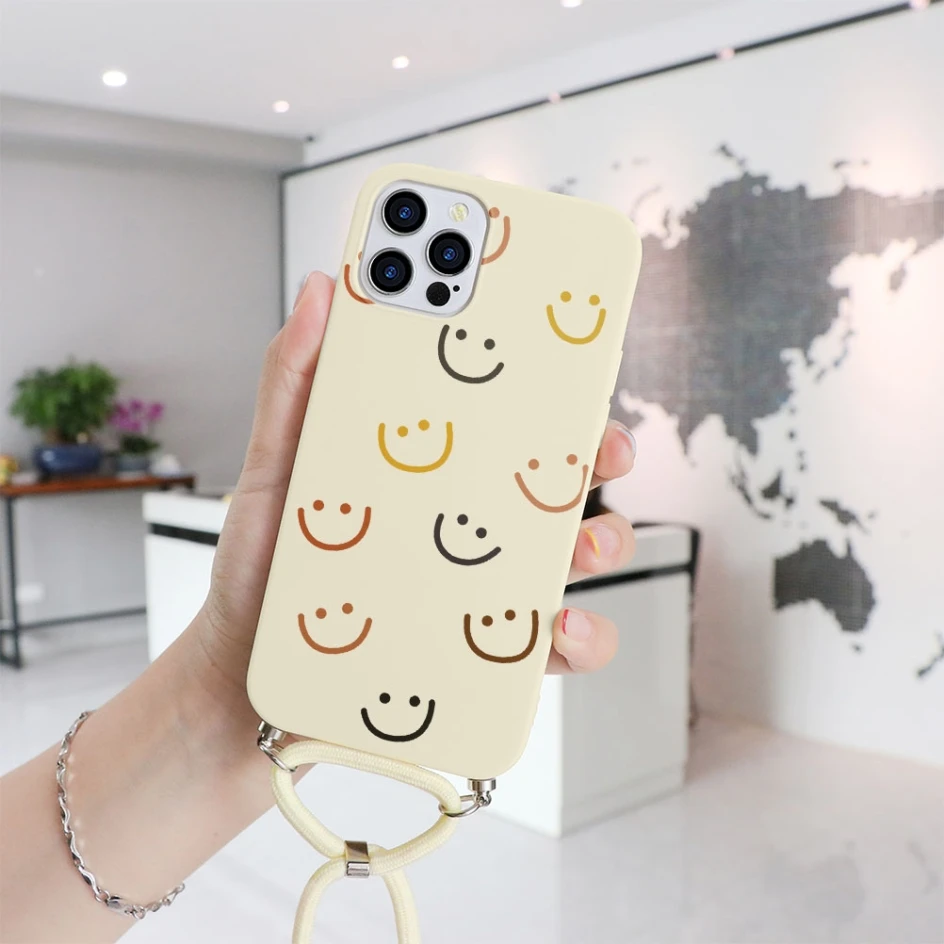 Милые Мультяшные чехлы с ожерельем и ремешком через плечо для iPhon...