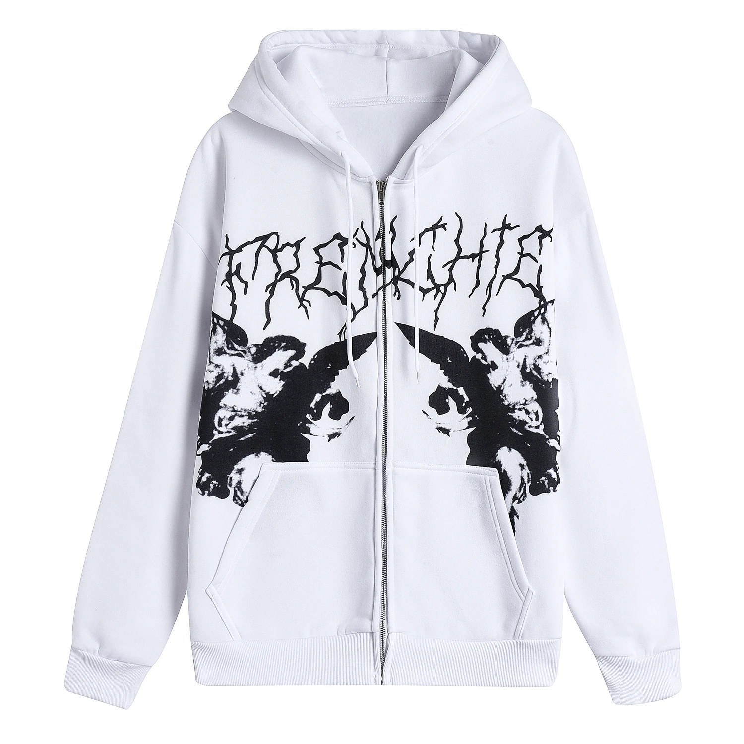 Женский пуловер на молнии, с надписью, с длинным рукавом, в готичес...