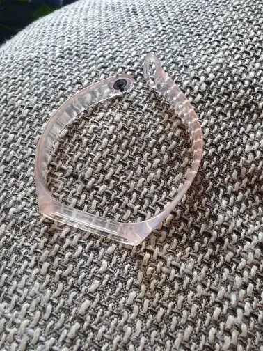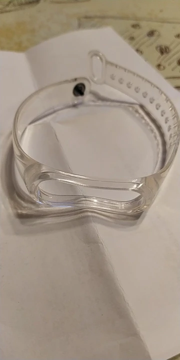 ремешок прозрачный, сижу под лампой не темнеет(мб на солнце?), так твердоват силикон и можно не переживать что слетит браслет