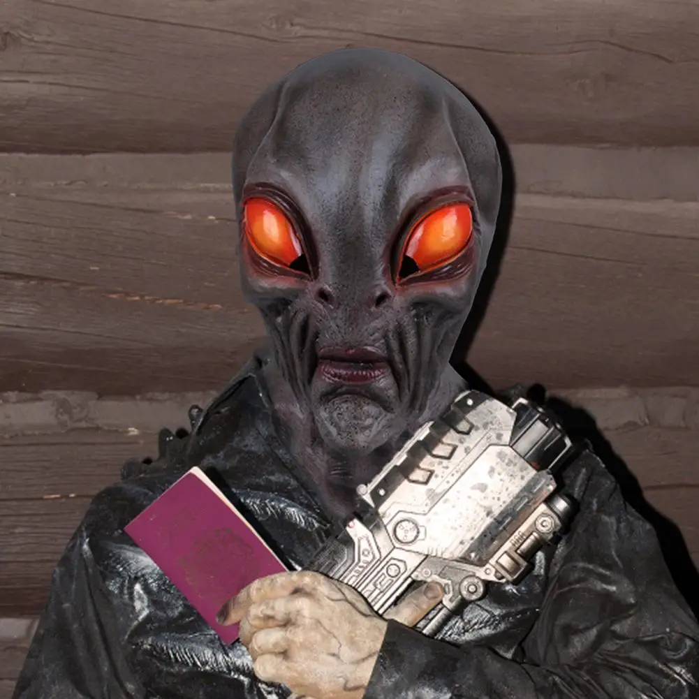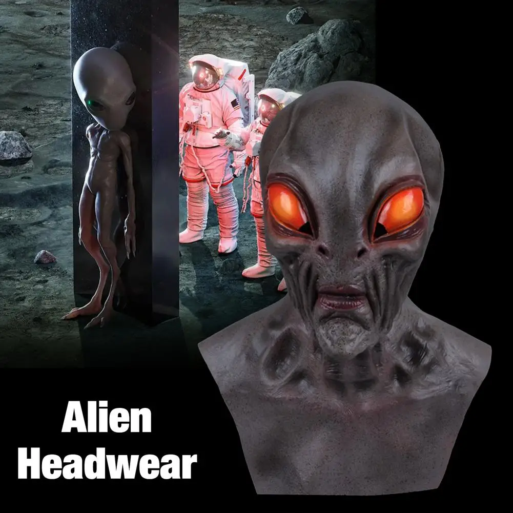 Страшная латексная маска Инопланетянина на Хэллоуин, маска НЛО с большими глазами, инопланетянин на всю голову, маска для вечеринки или маскарада для взрослых, костюм для вечерние НКИ, косплей, ужасная маска