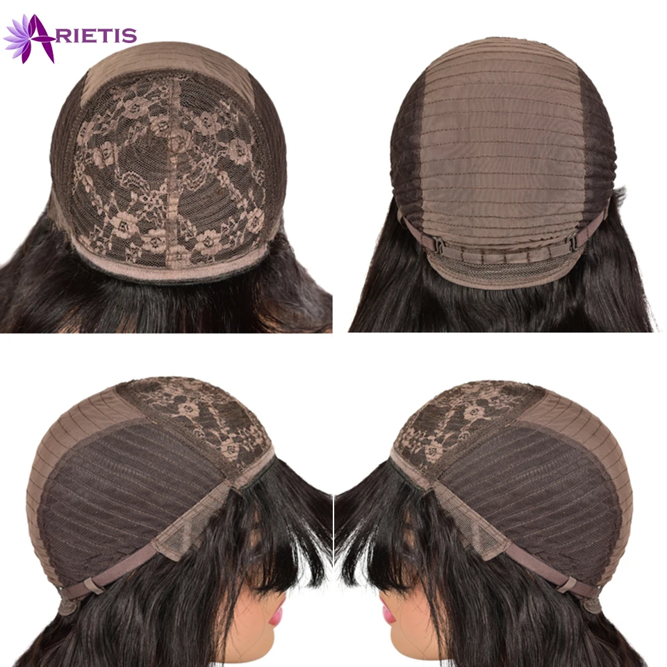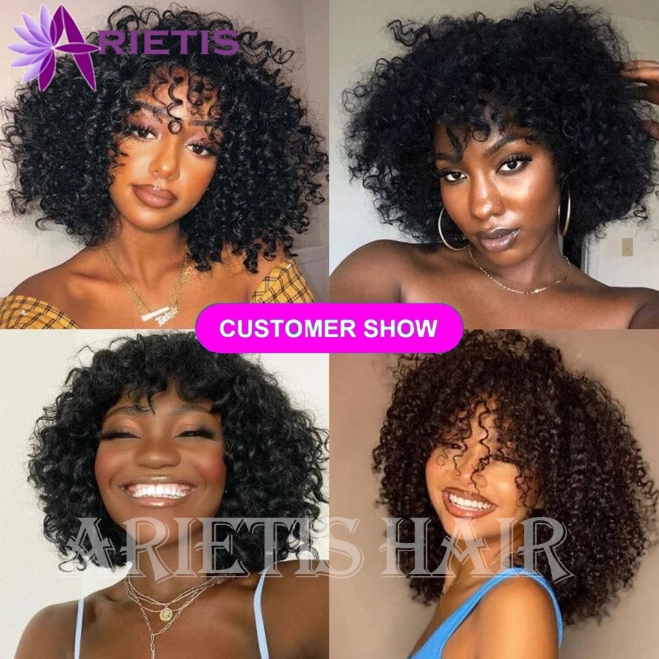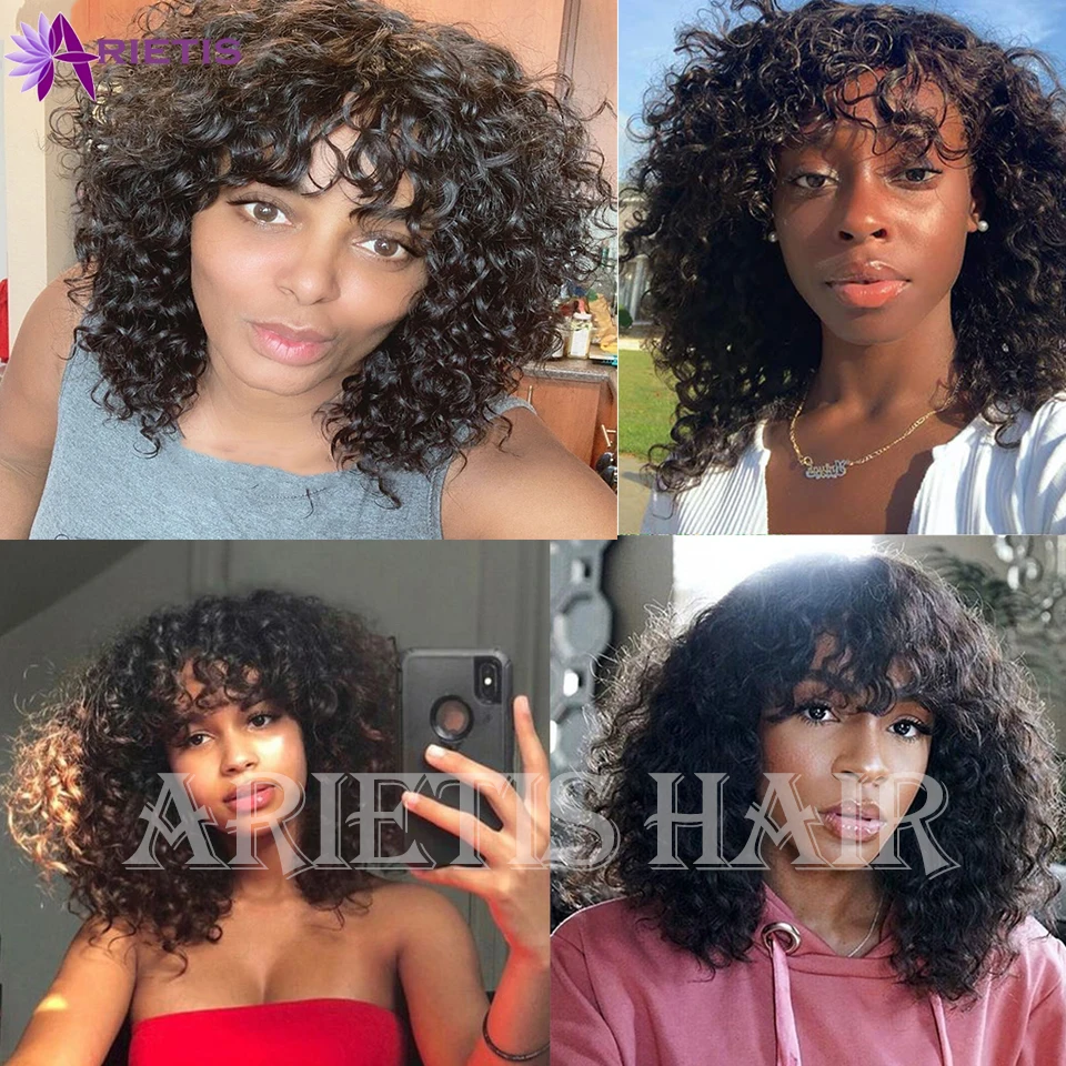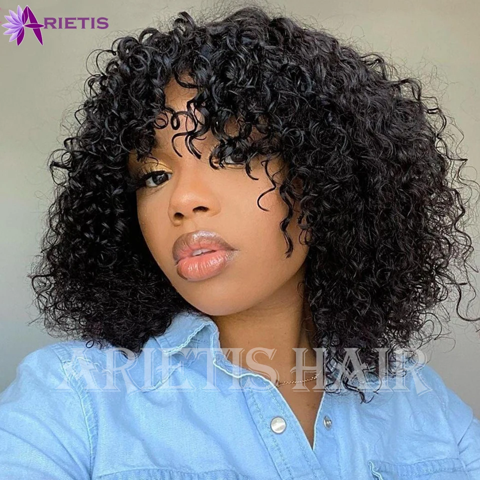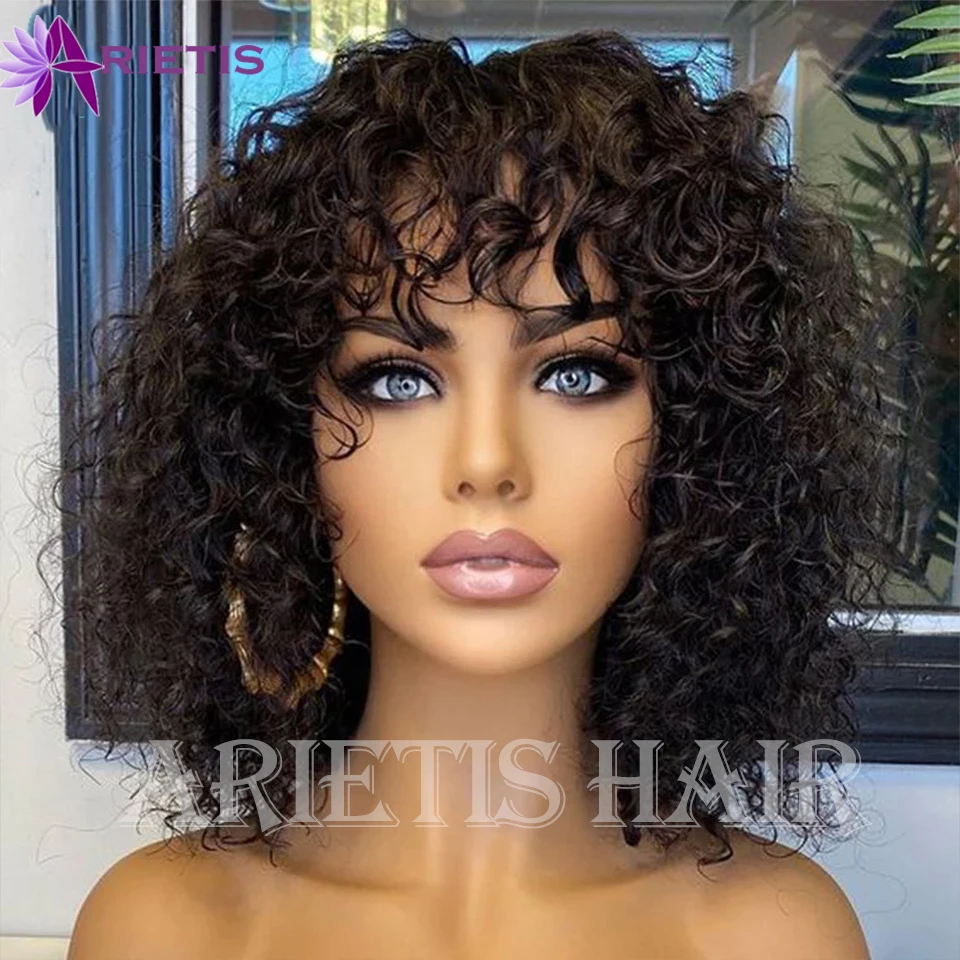 Парик с короткими волнистыми волосами, с челкой для чернокожих женщин, натуральные черные неповрежденные волосы без клея, полностью автоматический, 16 дюймов, оптовая цена