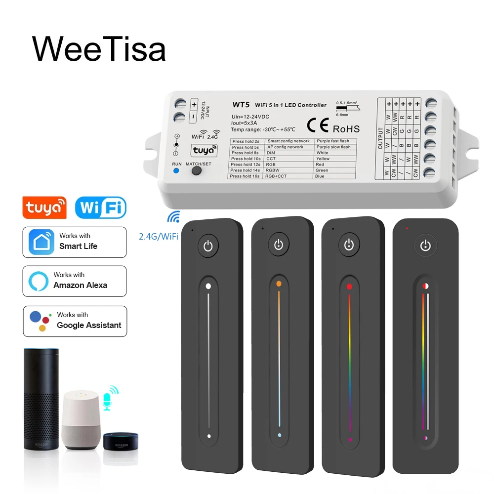 Tuya светодиодный контроллер 5 в 1 диммер CCT RGB/RGBW/RGBWW RGBCCT полосы приложение Smart Life Wi-Fi 2,4G RF Беспроводной пульт дистанционного управления 12V 24V WT5