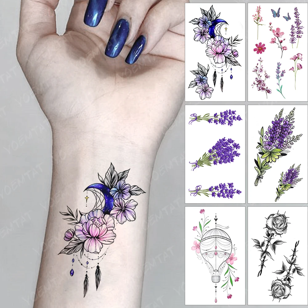 Водостойкая Временная тату-наклейка Aurora Moon, кружевные цветы, Ловец снов, флэш-тату на руку, запястье, искусственная тату для боди-арта для женщин