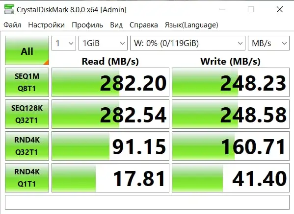 Идеально я приезжаю примерно через 15 дней очень быстро, скорость в usb-адаптере для тестов 430 чтения и 365 записи очень высоко на любой марке и очень стабильно без проблем заряжает windows 11, спасибо за устройство, которое я любил его профессионализм, настоятельно рекомендую.