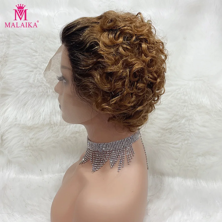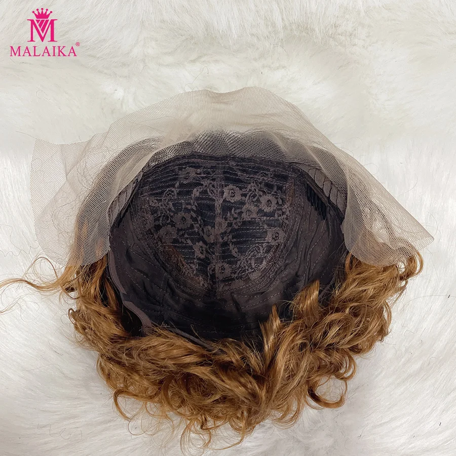 Волосы Malaika прозрачные кружевные волнистые завитки 1b30 короткий Боб 13x 1 кружевные передние человеческие волосы парики коричневый парик для салона
