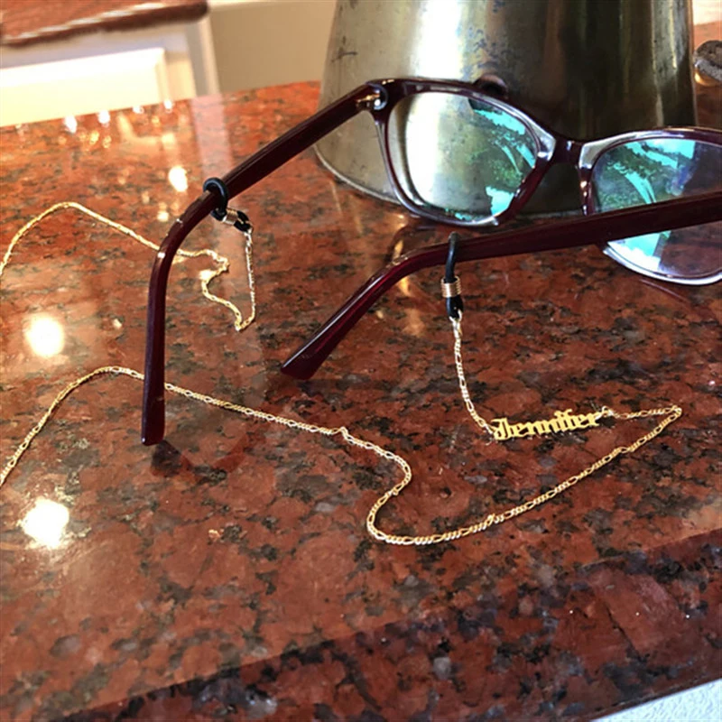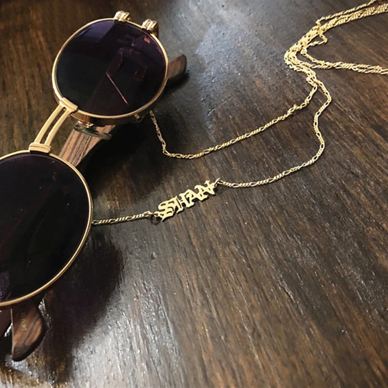 Название: цепочка для очков из нержавеющей стали под заказ для женщин и мужчин Персонализированная Модная Золотая цепочка с буквенным принтом ожерелье ювелирные изделия