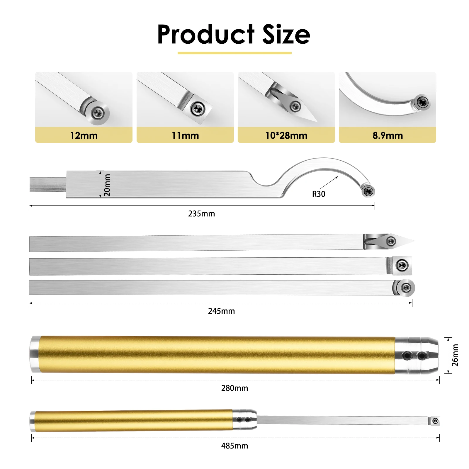 Набор токарных инструментов для древесины, инструмент для токарной обработки шеи лебедей, твердосплавные режущие пластины, алюминиевая ручка
