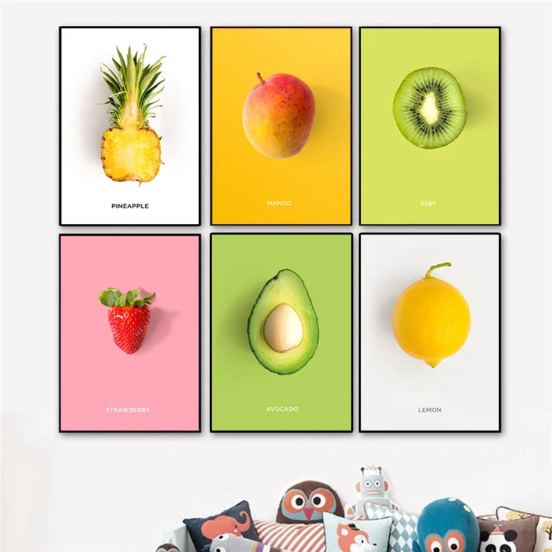 Цветная живопись, фрукты, ананас холст, современный декор для ресто...