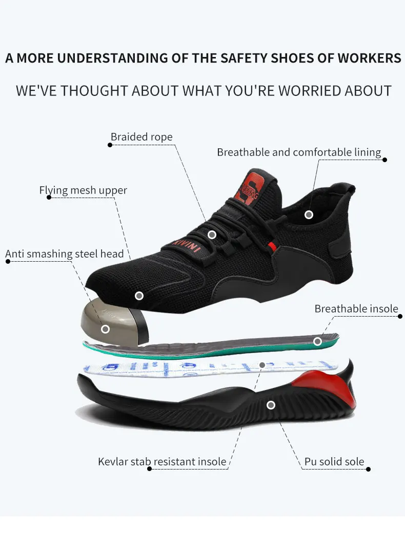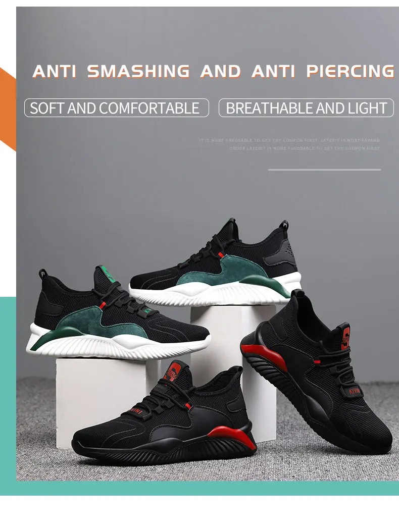 Мужская Летняя воздухопроницаемая защитная обувь для работы, легкая амортизирующая Рабочая защитная обувь с воздушной подушкой для защиты от пирсинга