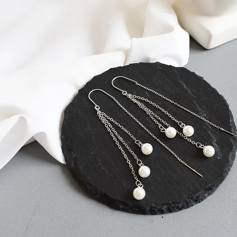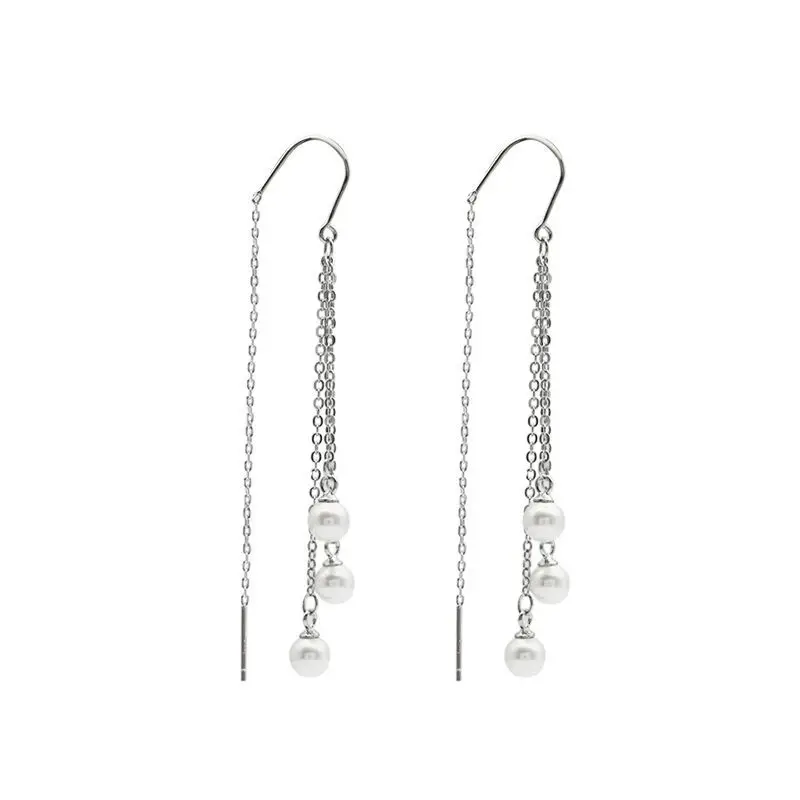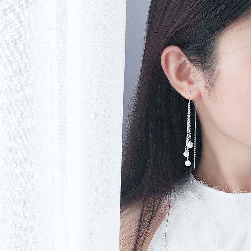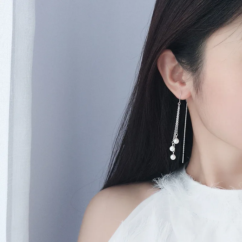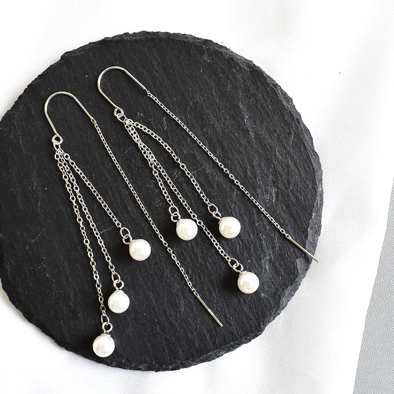LKO Настоящее серебро 925 пробы, классические жемчужные длинные серьги-подвески с кисточками для женщин, невесты, свадебной вечеринки, женские ювелирные украшения