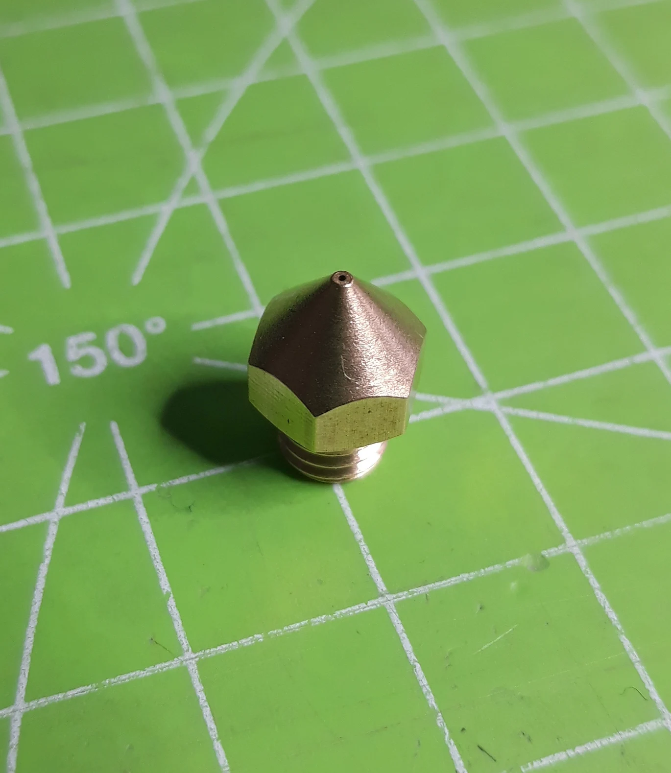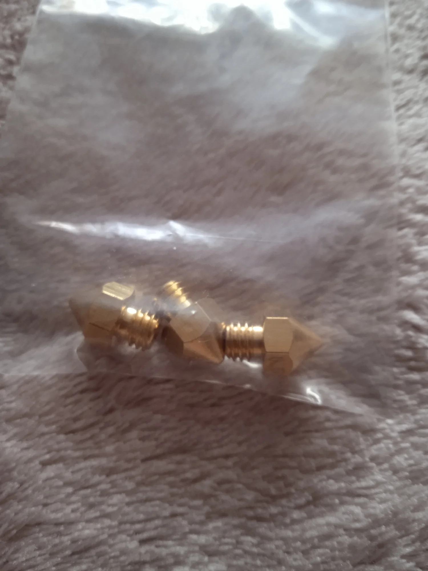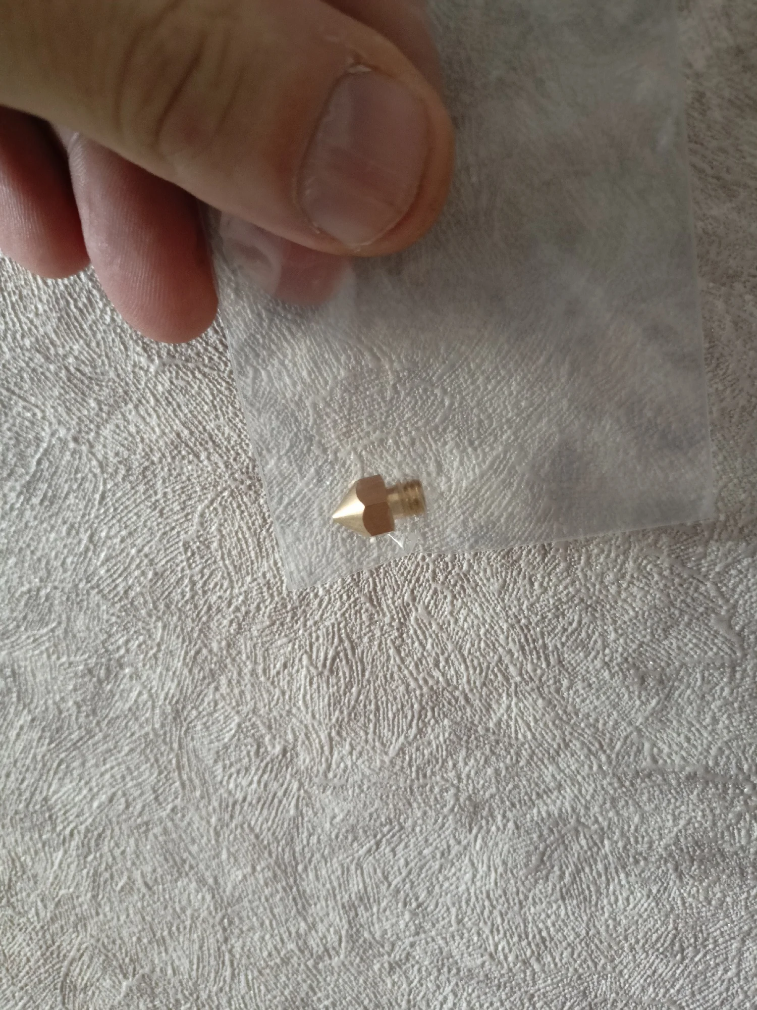 Супер быстрая доставка, 7 дней! Хорошая насадка для 0,07 €, доставка включена (Питти больше не может заказать;-) Но не высокое качество, отделка не очень хорошая. Какой-то латунный сплав, но он слегка притягивается к сильному магниту и кажется гальваническим (угадывание); это может быть причиной того, что диаметр отверстия немного меньше номинального 0,4 мм и не Гладкий (пришлось его заусить). Он работает достаточно хорошо при начальных тестах.