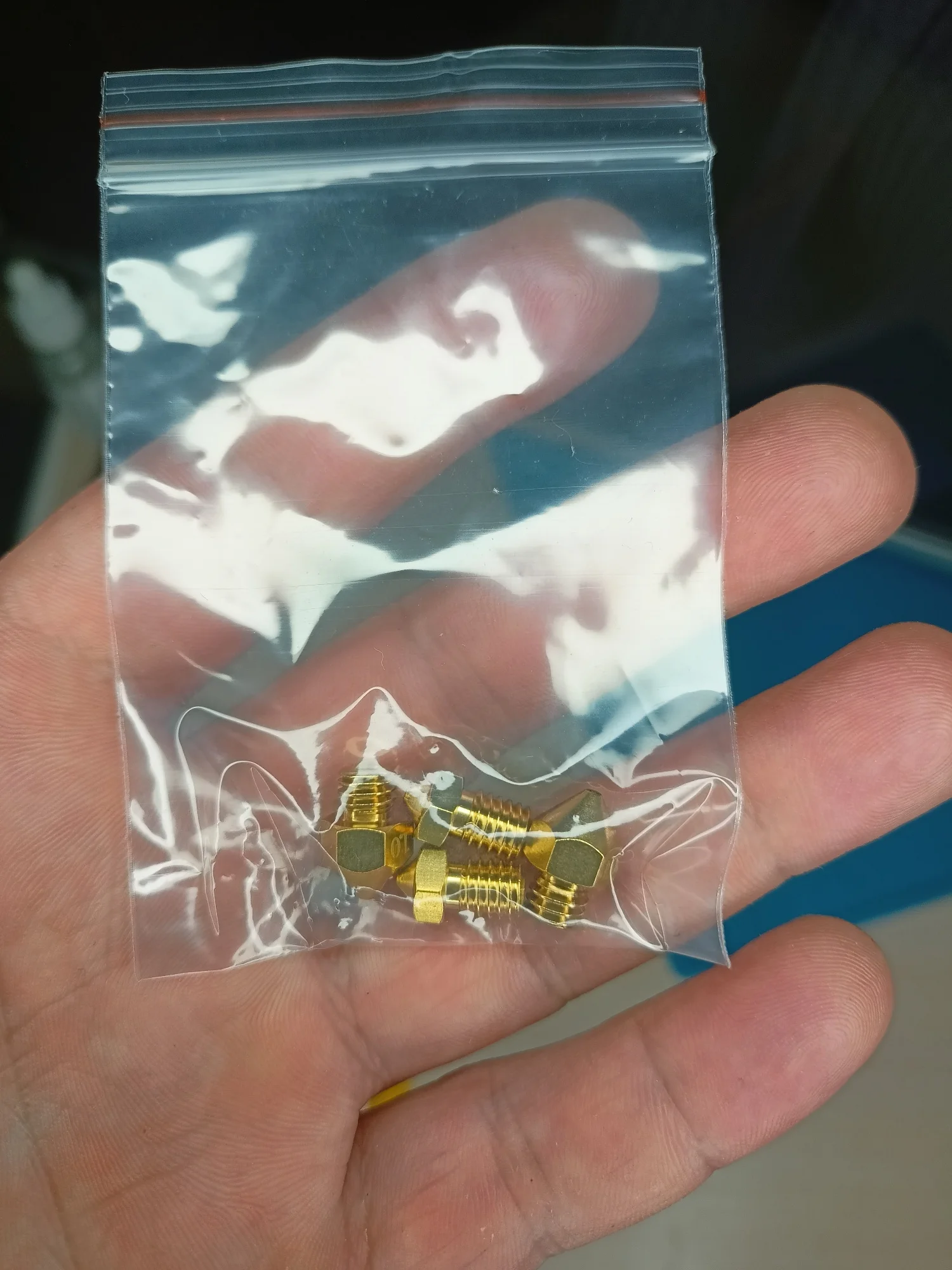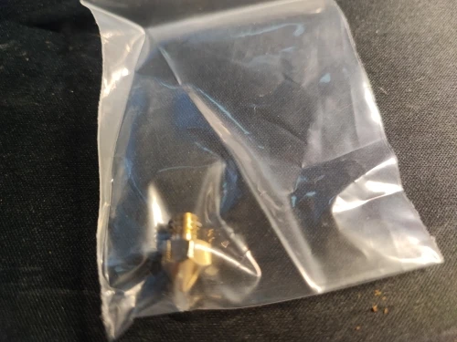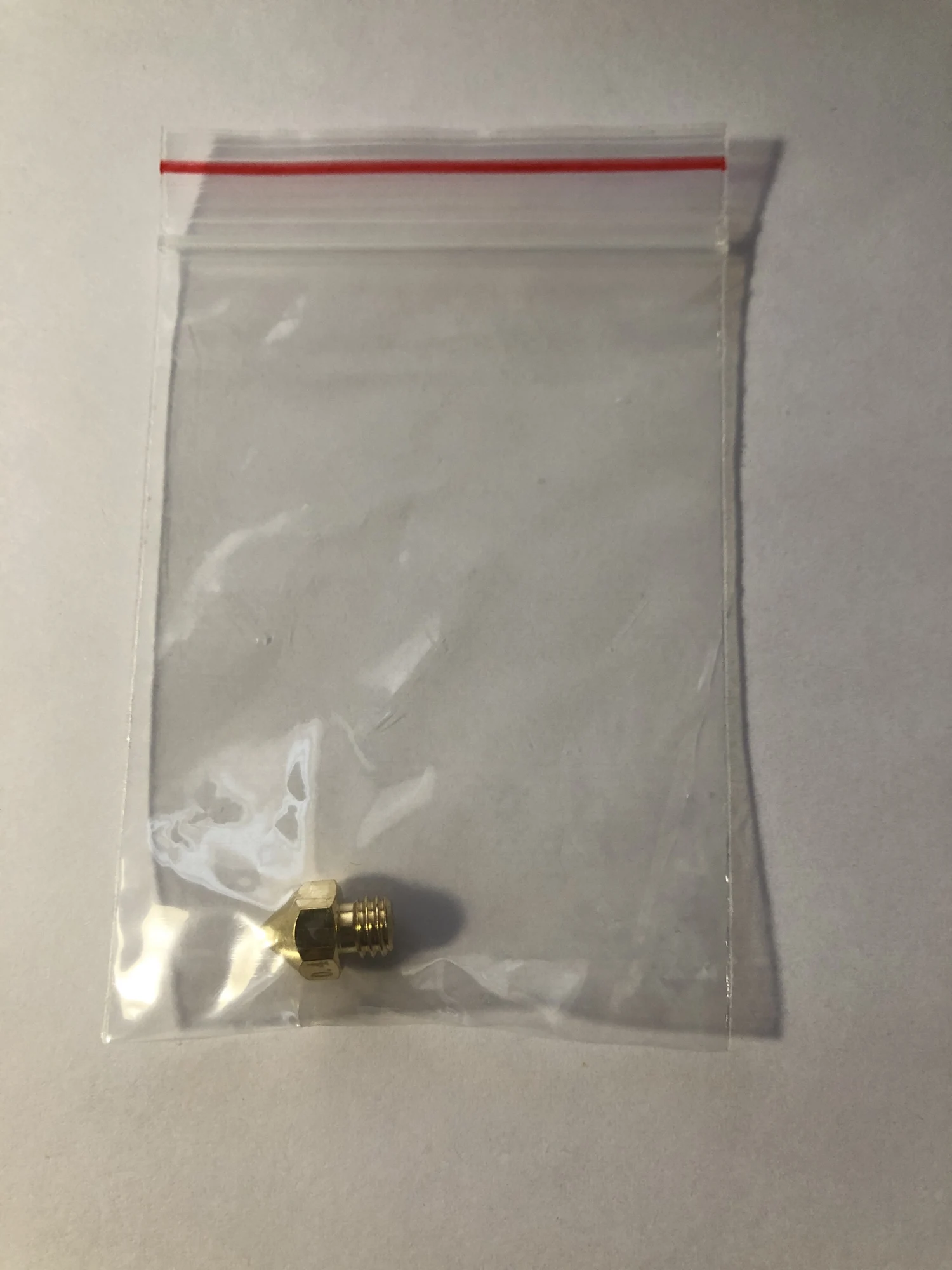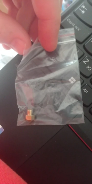 Супер быстрая доставка, 7 дней! Хорошая насадка для 0,07 €, доставка включена (Питти больше не может заказать;-) Но не высокое качество, отделка не очень хорошая. Какой-то латунный сплав, но он слегка притягивается к сильному магниту и кажется гальваническим (угадывание); это может быть причиной того, что диаметр отверстия немного меньше номинального 0,4 мм и не Гладкий (пришлось его заусить). Он работает достаточно хорошо при начальных тестах.