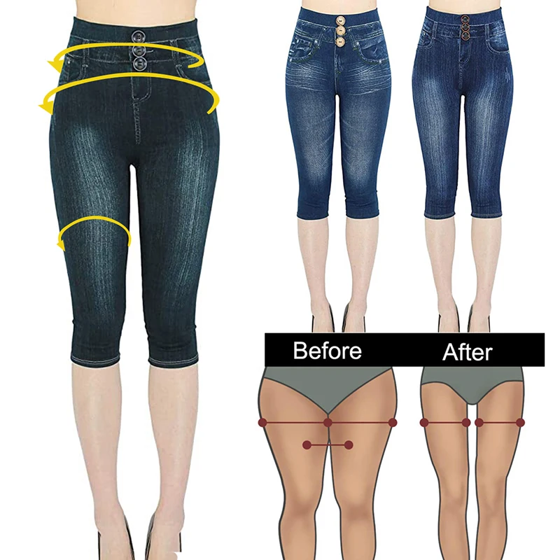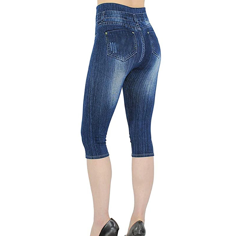 Леггинсы женские, из денима, с принтом, летние, летние узкие леггинсы, имитация джинсов