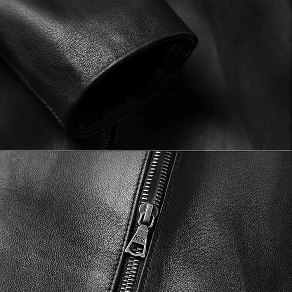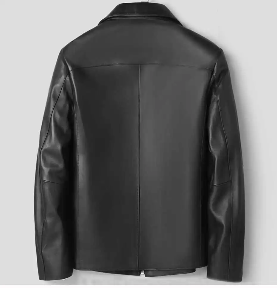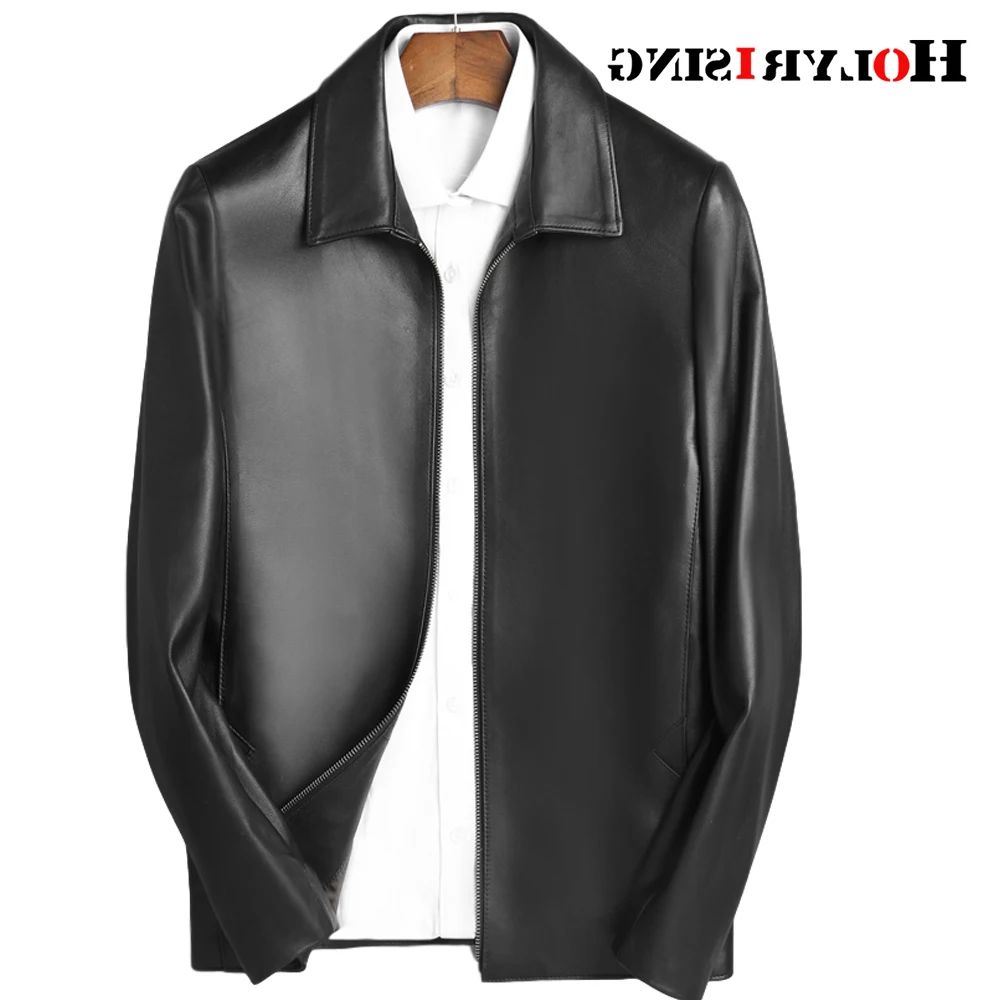 Мужское кожаное пальто из мягкой овечьей кожи, черная куртка в деловом стиле, осень 100%