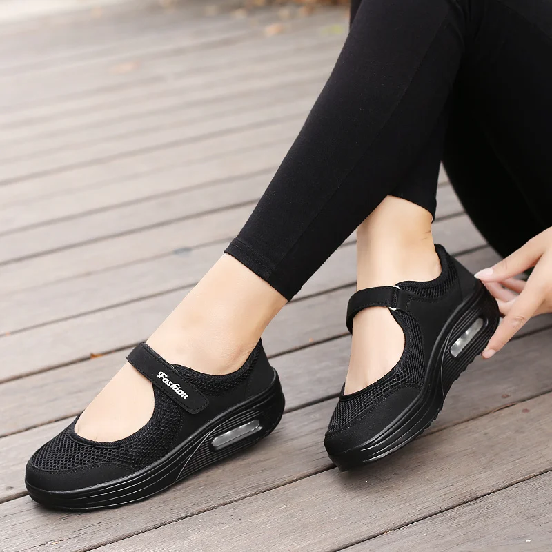 Амортизирующая Женская Черная Спортивная обувь без шнуровки, массив...