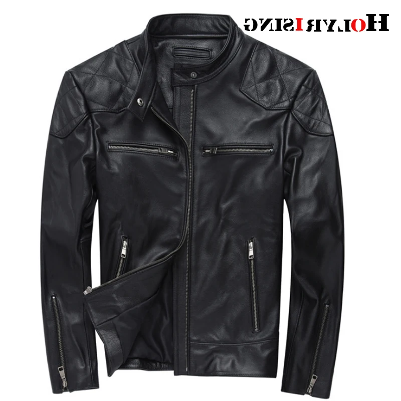 Мужская мотоциклетная куртка из натуральной кожи, приталенный воротник, повседневная куртка, размер S-3XL, 18660