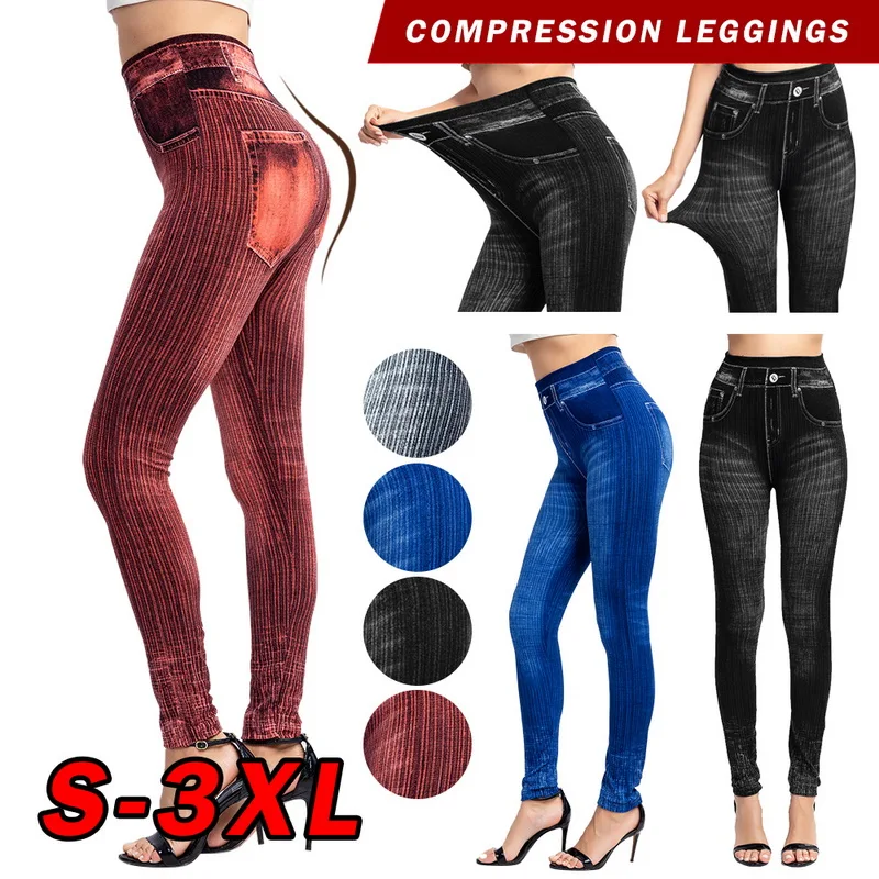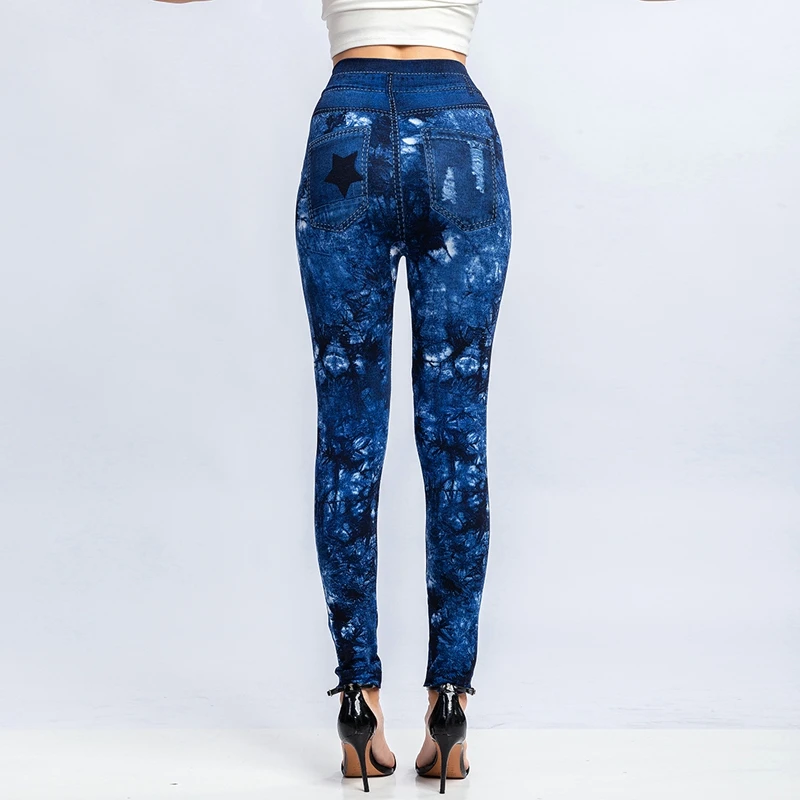 Женские джинсовые леггинсы с завышенной талией, штаны до щиколотки с принтом, Суперэластичные облегающие джинсы с имитацией, дропшиппинг, 2021