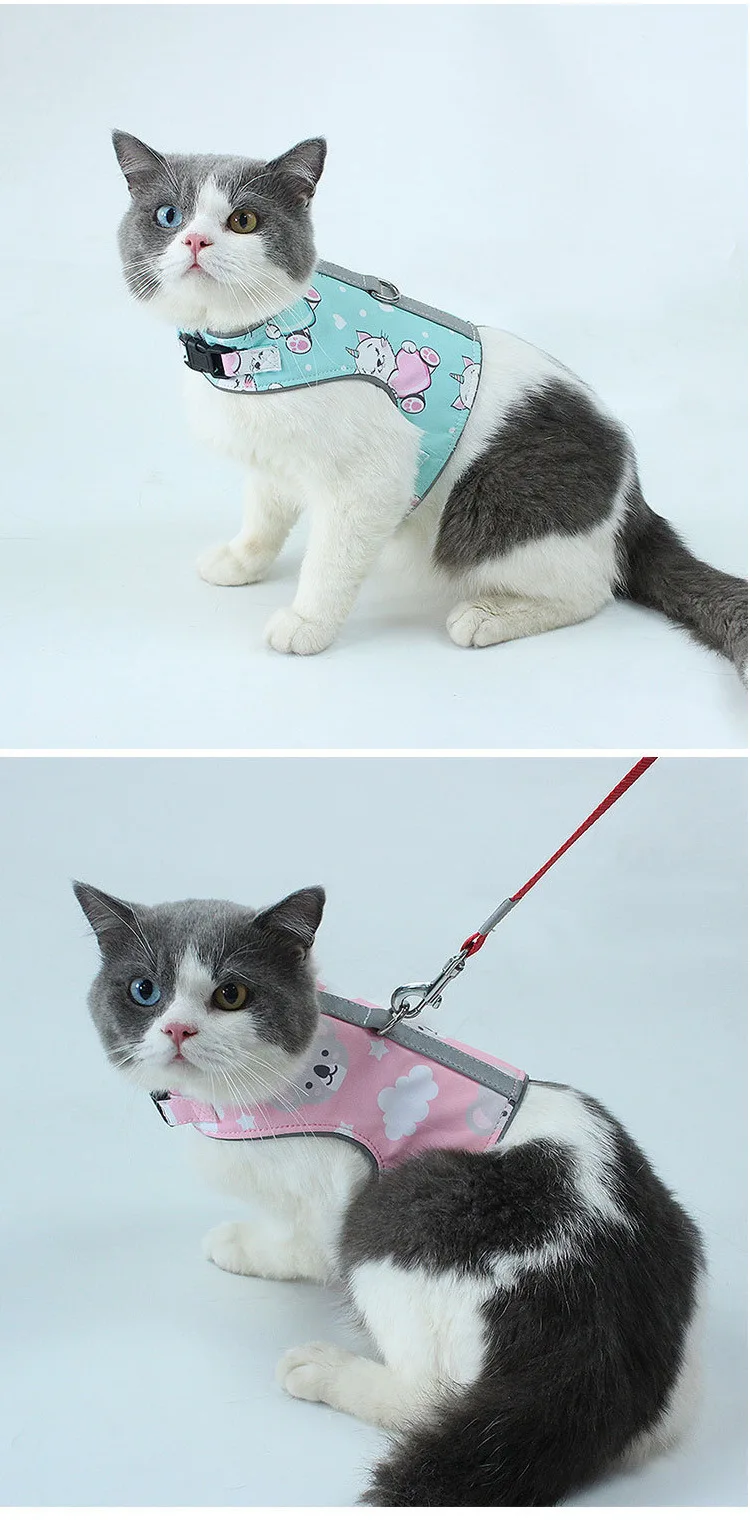 Ошейник для кошек с жилетом, поводок для прогулок, сетчатый поводок, светоотражающий, анти-свободный, кошачий, нагрудный и задний, Тяговый канат для кошек