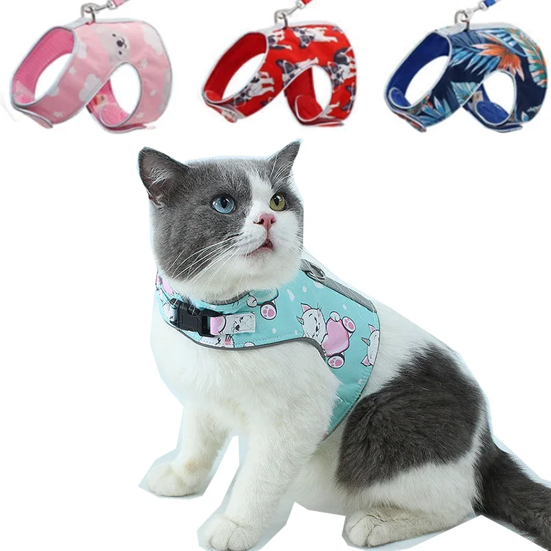 Сетчатая шлейка для кошек, дышащий жилет с принтом, нагрудный ремен...