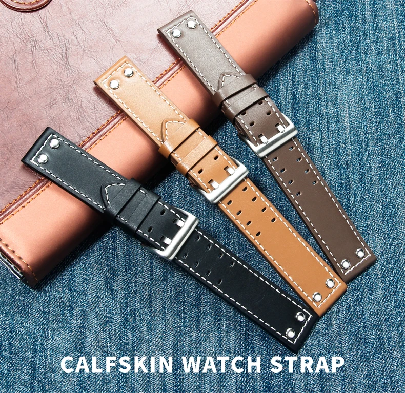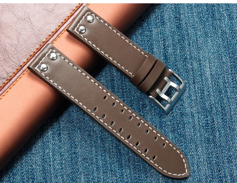 Кожаный ремешок с двумя рядами отверстий 20 мм 22 мм для наручных часов Гамильтона Сейко, мужской военный пилот цвета хаки, ремни с заклепками для планшетов