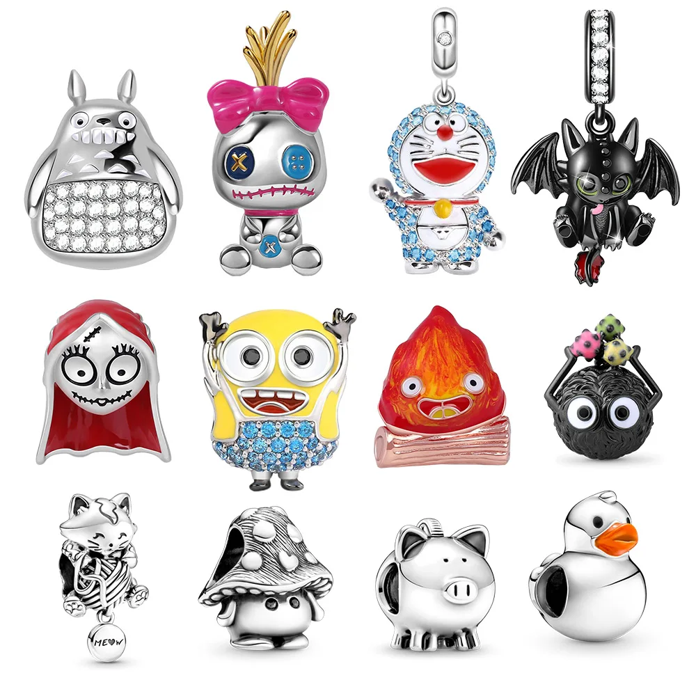 Кукла-Шарм Ститч из серебра 925 пробы, с котенком