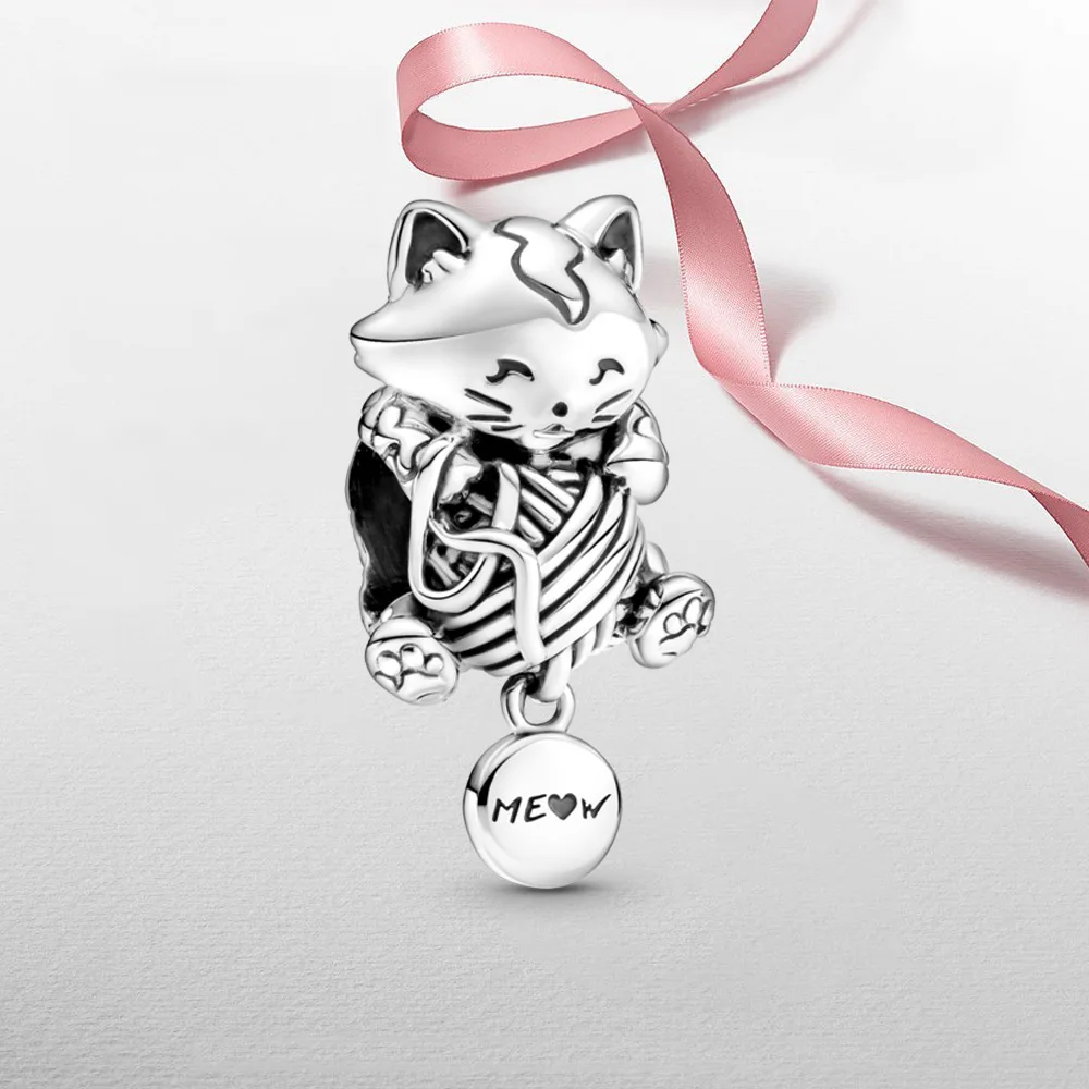 Женский браслет из серебра 925 пробы, с подвеской в виде котят